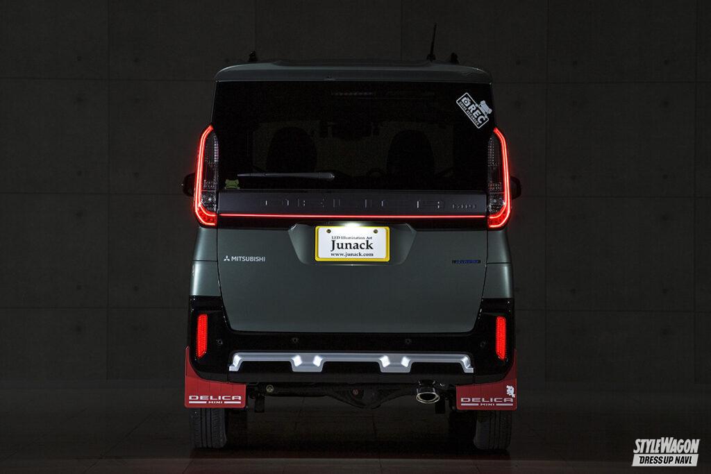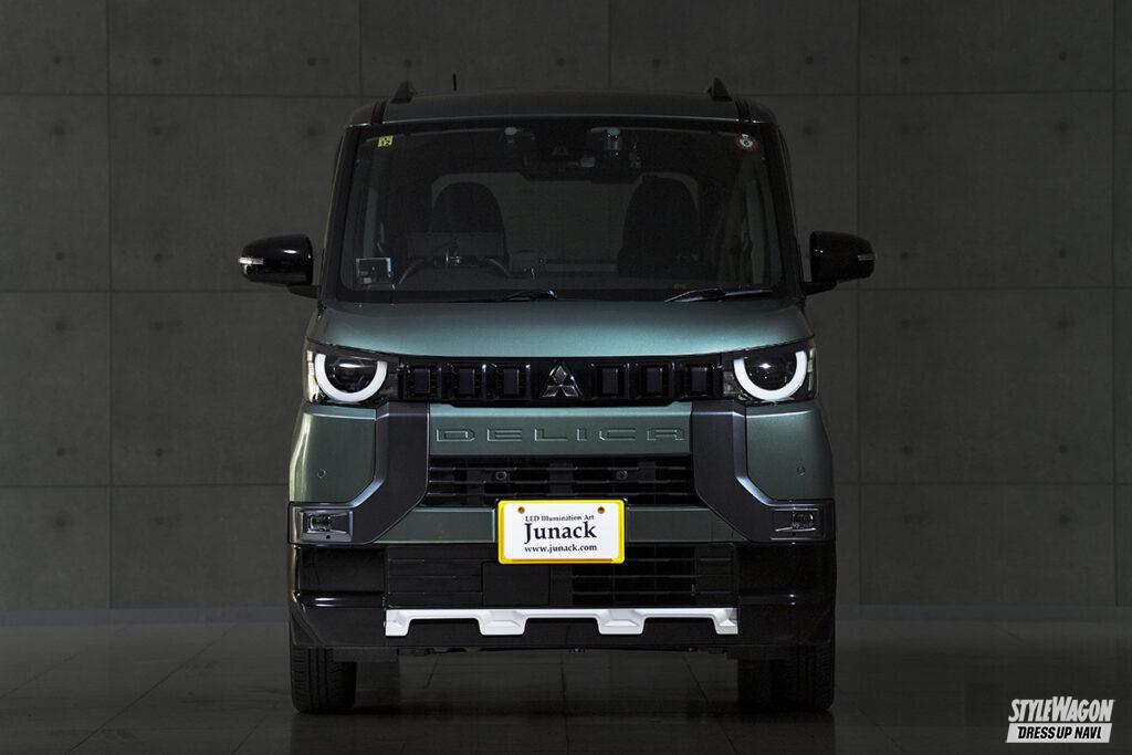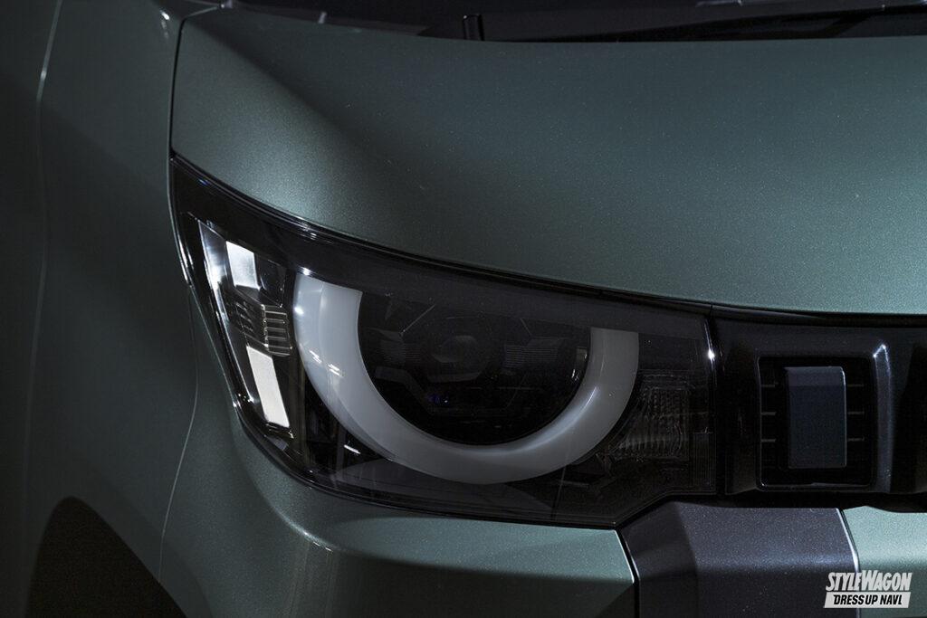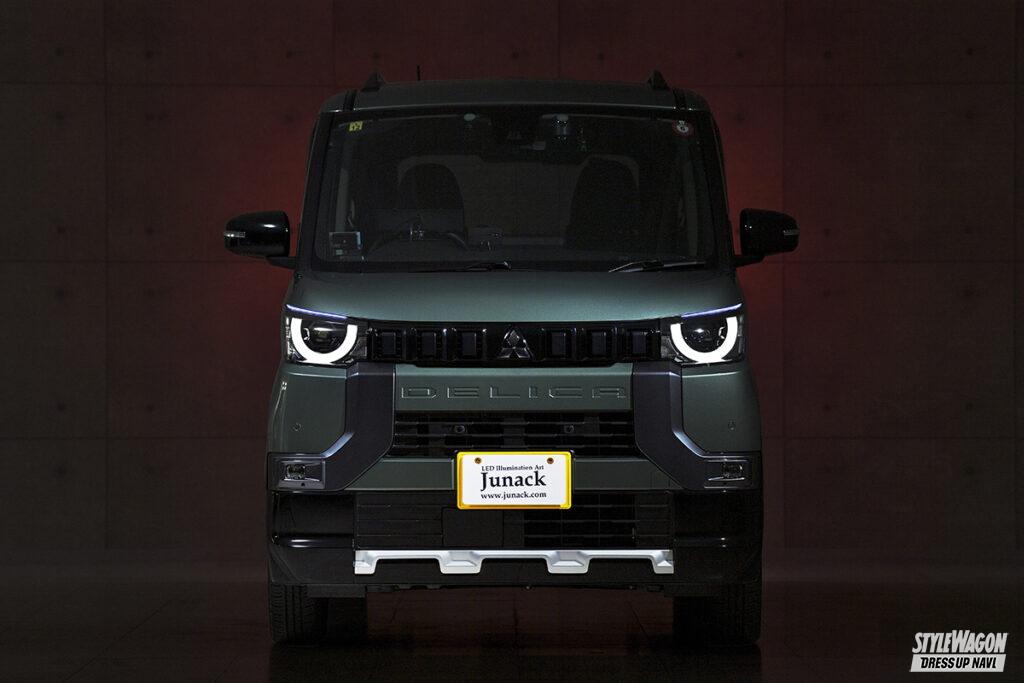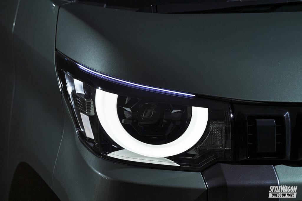 今回はデリカミニにフォーカス! ベース車の個性に合わせユニークなアイテムを設定しているのだ。デリカミニには象徴的なキャラ『デリ丸。』がいる。その『デリ丸。』感を強調する(!?)アイテム〝デリまゆ〟『リ・ザード アイブロー』を開発。この眉があることで、より生き物感がアップ=『デリ丸。』感が強調されるというワケ。しかもクールなブルー、個性的なシアン、シックなホワイトと色味も3種類をラインアップ。そのほかの光のカスタムに合わせて選択できる体制が整う点もポイントだ。