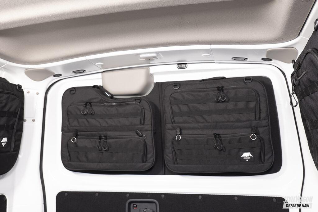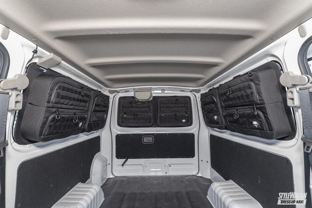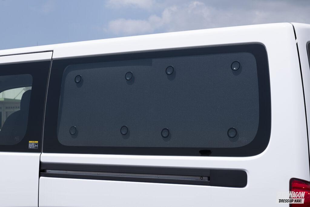 ワンボックスであるキャラバンは、ラゲッジスペースが広く荷物の積載性は高い。仕事で使う道具満載というケースや、ベッドキット+コンテナボックスでアウトドアを楽しむなど、使い方は様々。そういった場合でもデッドスペースになりがちなのがウインドウまわり。