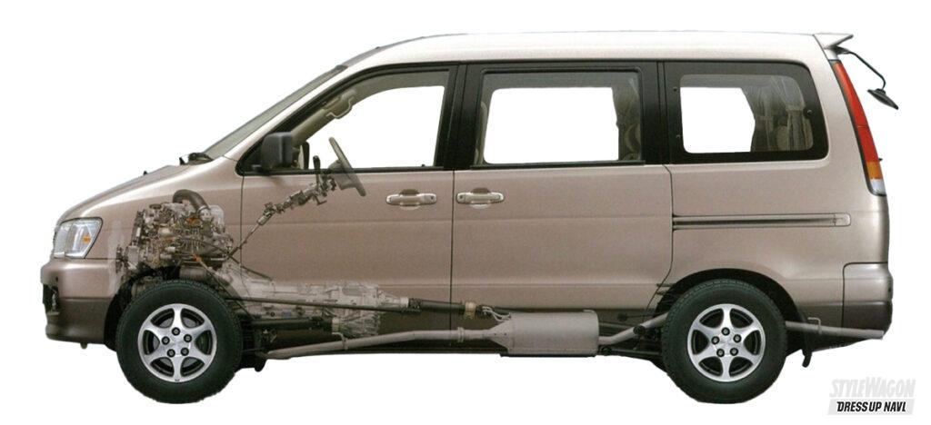 基本的にはフロントにエンジンを搭載し後輪を駆動するFRで、4WDも用意した。コラムシフトを採用することで後席へのウォークスルーも可能。いわば現在のミニバンと一見それほど変わらないモデルではあった。