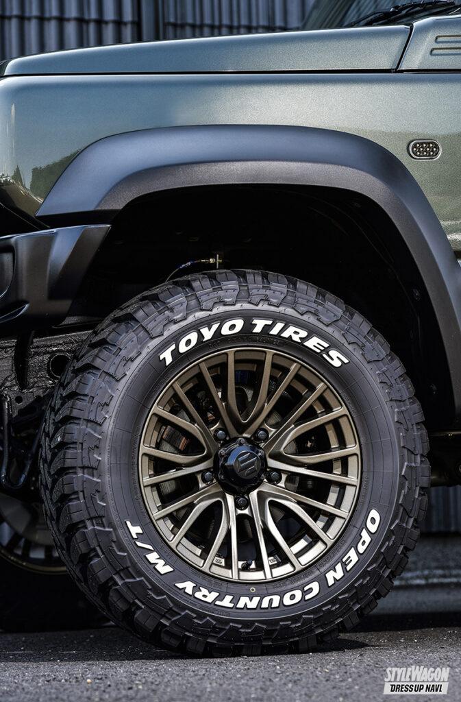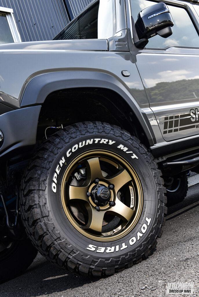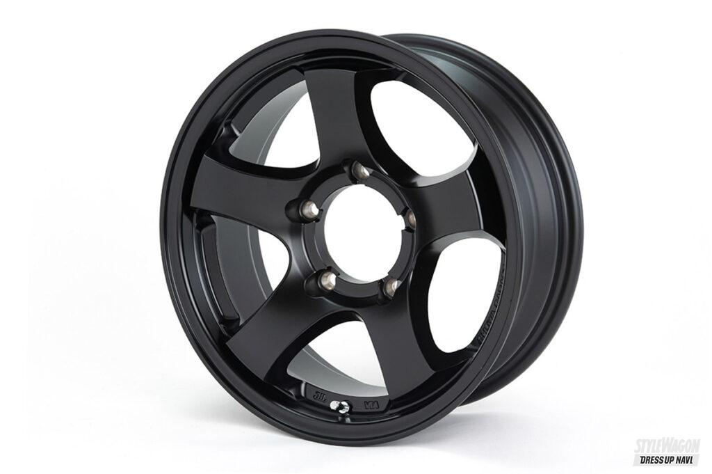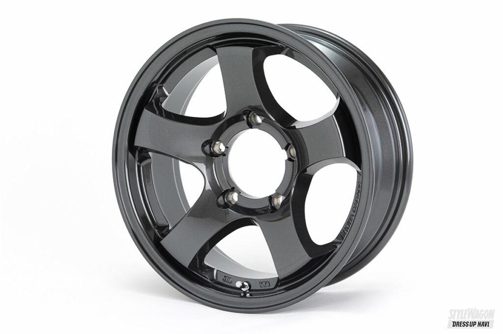 そんなショウワガレージ製ホイールの代表格が、普遍的で王道な5スポークを採用したタイプM。リムの深い位置から立ち上がったスポークが、その頂点からセンターへ向けて大きく落とし込まれていくコンケイブフォルム。シンプルながらも立体感が強く、ジムニーの足元に大きな力感をもたらしてくれる。永く色褪せない魅力に包まれた1ピースだ。