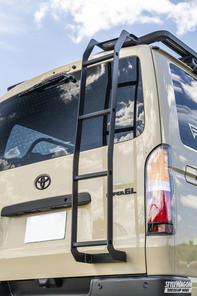 ●エクステリア/ルーフラック・オーニング=ライノラック、サイドステップ=エクシズルライン、リアラダー=フロントライン、テールランプ=フレックス、各部ブラックアウト