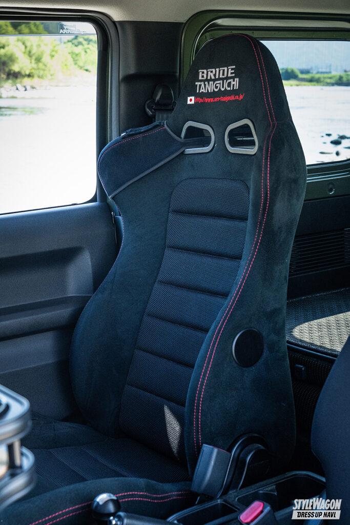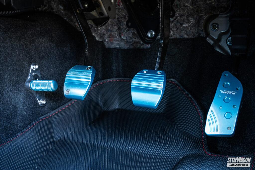 さらに、このJB74が気を遣っている部分はドライバーが触るアイテム。運転席はBRIDEユーロスターⅡクルーズ タニグチverシートヒーター搭載モデルに変更。シフトノブ、トランスファーノブは手触りの良いモデルに交換。操作位置も、若干延長し、角度の補正を行い気を遣っている。ペダル類もフットペダルバータイプで新設し、人間工学に基づいた形状のものを装着。操作することに楽しさを感じられる内容となっているのだ。