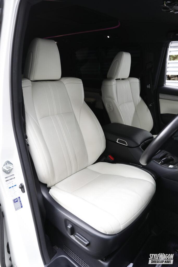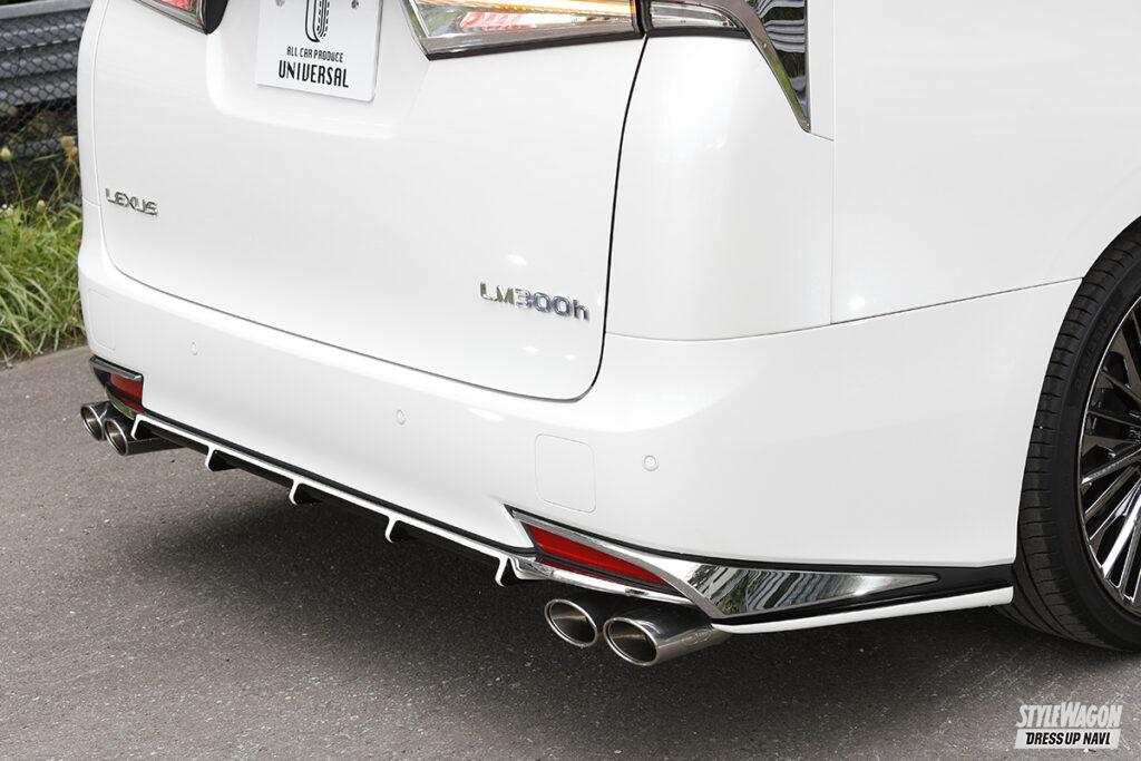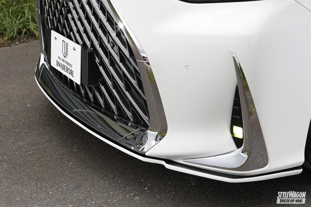 「ある意味ブームだった時はコピー品を使ったLM仕様なんかも出回ったりしてましたよね。ユニバーサルでは海外の独自ルートを使ってレクサス純正品をスワップしています。また、新型が出たことで30系の車両中古価格が落ちてくれば、ブームだった当時よりもお得にコンプリートカーを製作できるのもポイントですね。もちろん、40系より30系の方が好きっていうお客様もいますし、日本未発売の初代レクサスLMっていうのも、やぱりお目立ちポイントだと思います」と、ユニバーサルの高城店長。