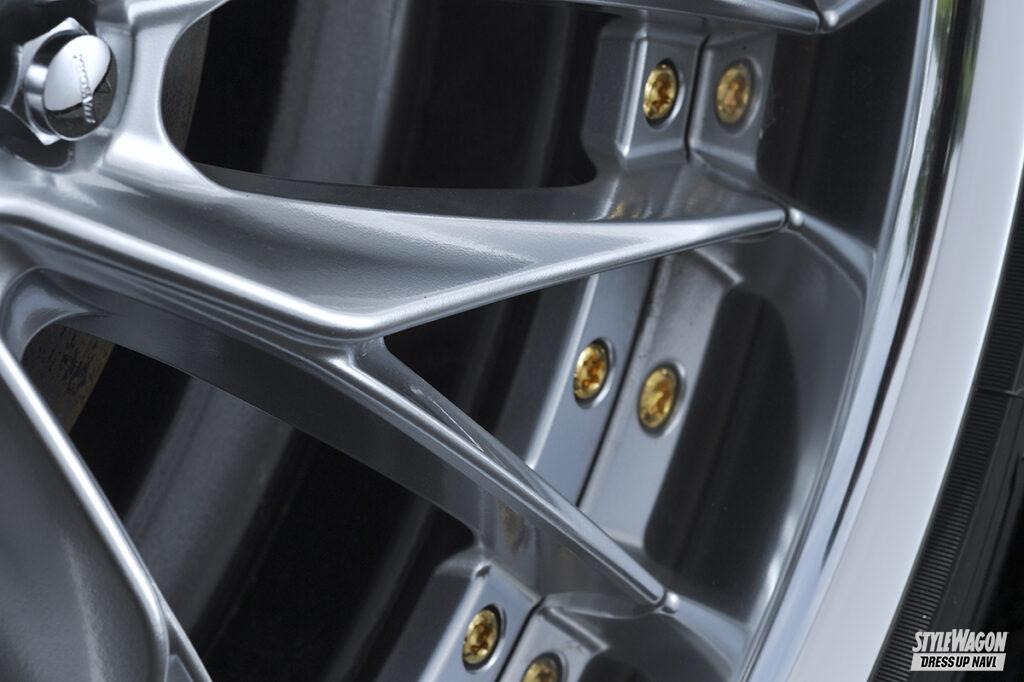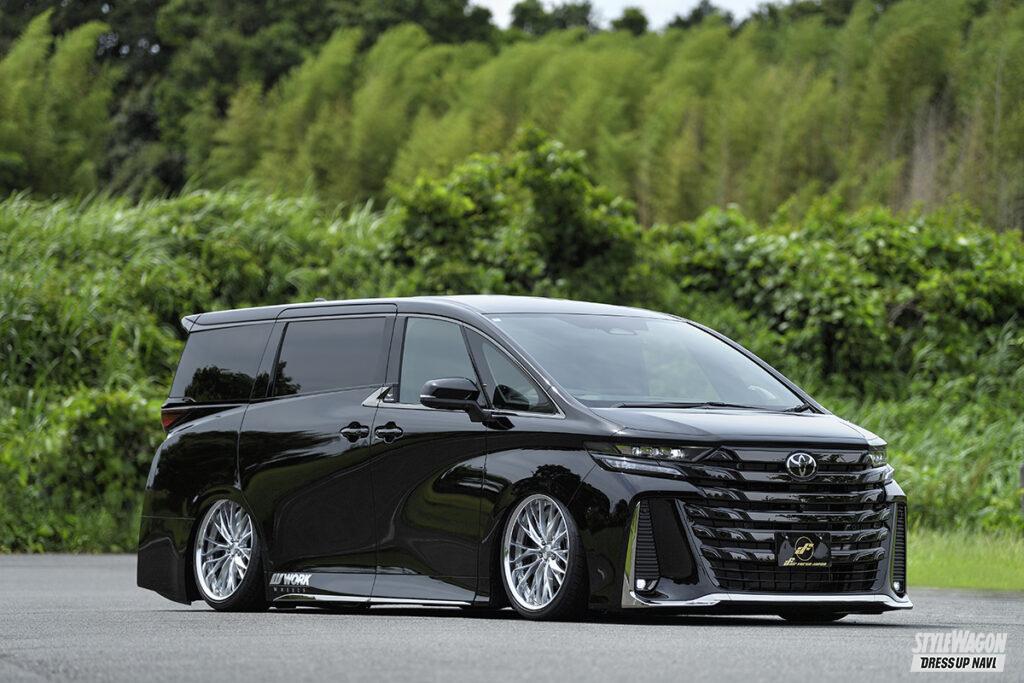 22インチを飲み込むなど懐の深い40系だが、細く長いスポーク系は大口径が似合うクルマとの相性がとくにいい。なかでもメッシュホイールは、40系のような重量級車特有のヘビー感を大きくやわらげる意味からも有効な選択肢といえる。どっしりと構えるボディと、華麗で軽快、ときに繊細な印象を与えるメッシュは、それぞれ単独で見れば正反対な性格といえるものの、実際履かせたときのまとまりの良さはときに予想を大きく超えてくる。大口径になるほど互いの長所が生きる、そんな印象だ。