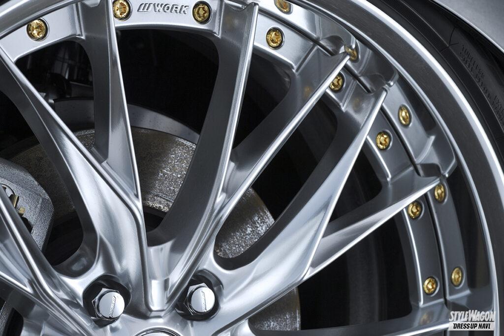 そこでシュヴァート。“鋳造美”を最新コンセプトとする、名門ワークを代表するこのドレッシーラインは、鋳造の意識を変えさせる繊細さを盛り込んだ進化系デザインを売りとする。最新作ブルネンは、ワークが持つ最高・最新の技術力が活かされた、メインとサブの2つの異なるスポークによるダブルフェイスだ。研ぎ澄まされたスポーク形状は、角度、長さ、太さに徹底してこだわるなど、シュヴァート(剣)を彷彿とさせるに充分なほどシャープでキレ味も抜群。とくにスポーク天面の細さは見過ごせない見せ場。それでいて耐荷重もクリアしたタフな剛性も確保と、40系の足元を支えるにこれぞ最適。質実剛健な1本となっている。