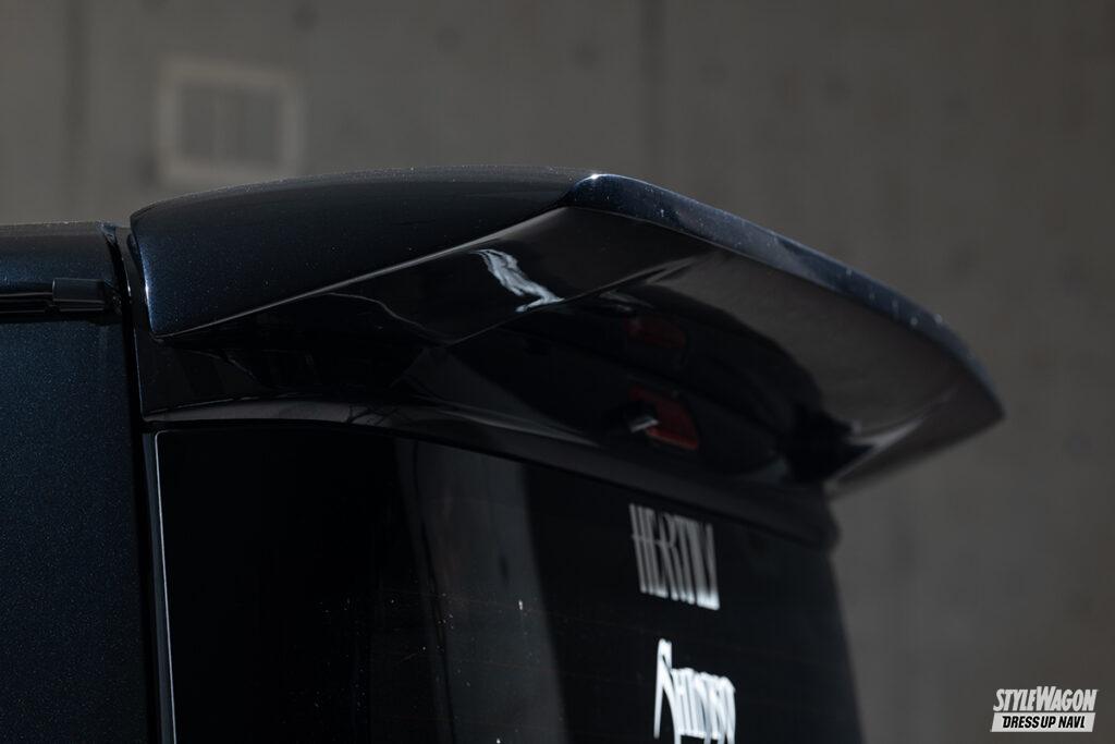 対して、アゲのエアロはLSラインのコンセプトを引き継ぎつつ、バンパーをショート化した“ワゴンルック・ショートバンパー・バージョン”。ラグジュアリーな雰囲気を出すため、敢えてオフロード感は少し控えめにとどめ、シティユースでも違和感のないオシャレな仕上がりを実現している。なお、足まわりは35ミリと50ミリアップから選べるリフトアップバネ“アップサス”を設定。好みの高さにセッティングすることが可能だ。