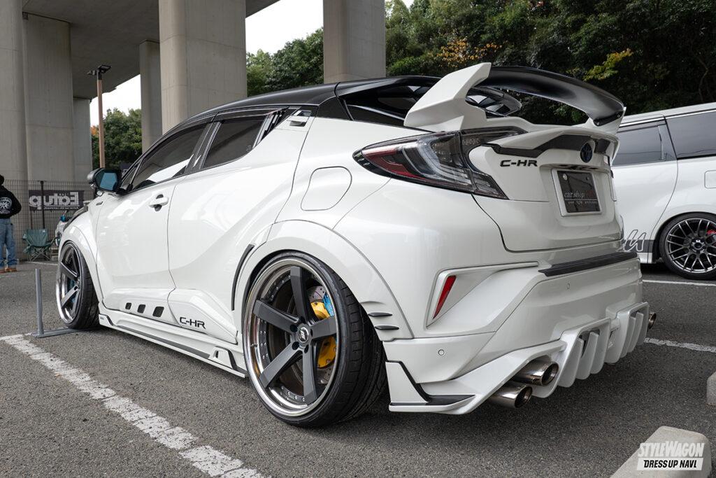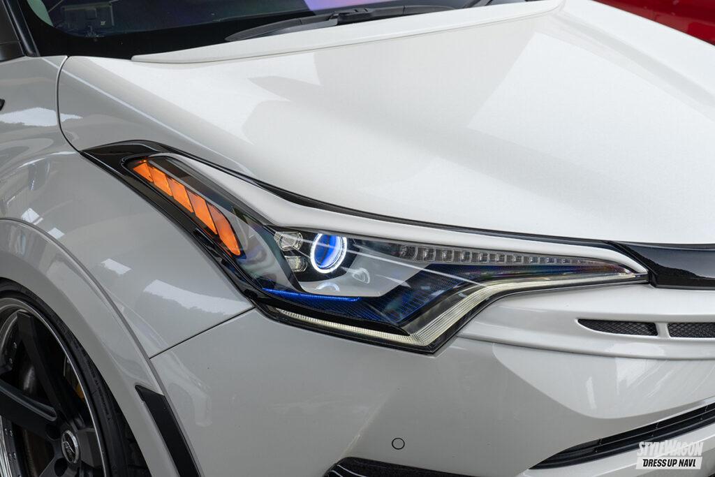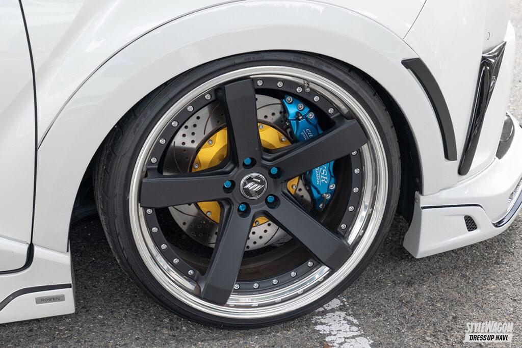 シンプルに大人っぽく、をテーマとしているNAOKIサンは、アグレッシブでスポーティなパーツを中心に取り入れているものの、色数を抑えたモノトーンな仕上げを徹底することで「刺激的だけど派手すぎない」を追求。エアロはロェンを核としつつ、フェンダーにビヨンド、ウイングのノブレッセとバランス重視のブランドミックスを敢行。車高調で目一杯までローダウンした足元には、21インチのジーストST2とイデアルの大口径ブレーキキットを投入してスポーティかつゴージャスに。ワンオフ加工を施したヘッドライトとテールレンズ、懐かしのクラリオンを軸とした外向きオーディオの完成度などトータルバランスもハイレベルだ。
