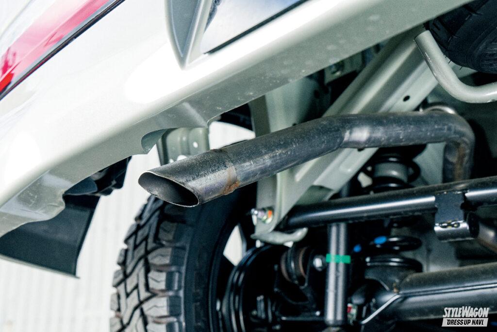 ライツのマフラーカッターは、エブリイ専用設計となっているので、出口の位置や角度もバッチリと決まる装着感が魅力。出口形状は106×80φのオーバルシングル出しスラッシュカット。出口カラーはクロームメッキのほか、ブルーカラーが美しいチタンルック、スポーティなリアルカーボンの3タイプをラインアップ。装着は純正マフラー出口に4カ所ネジ留め+落下防止用フック&固定バンドで、ガッチリと固定できるので安心だ。