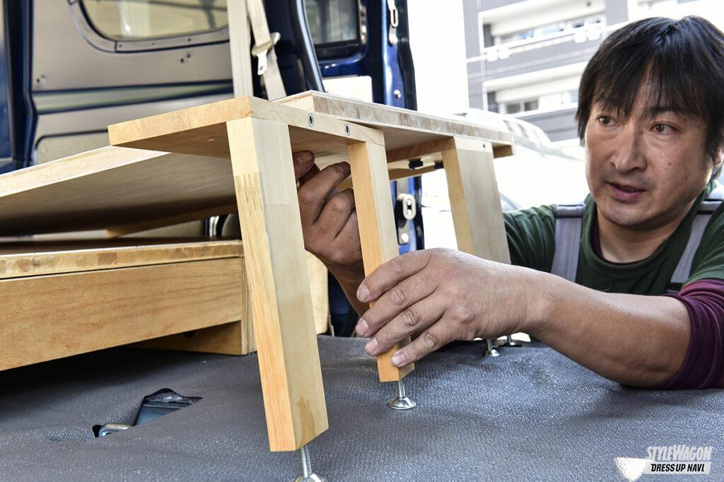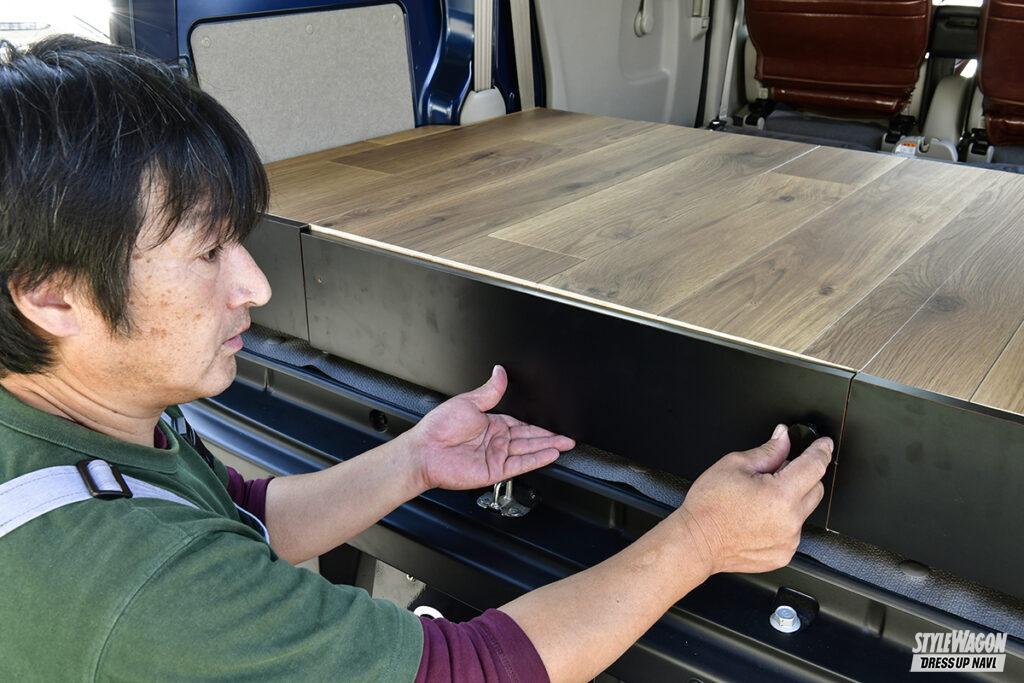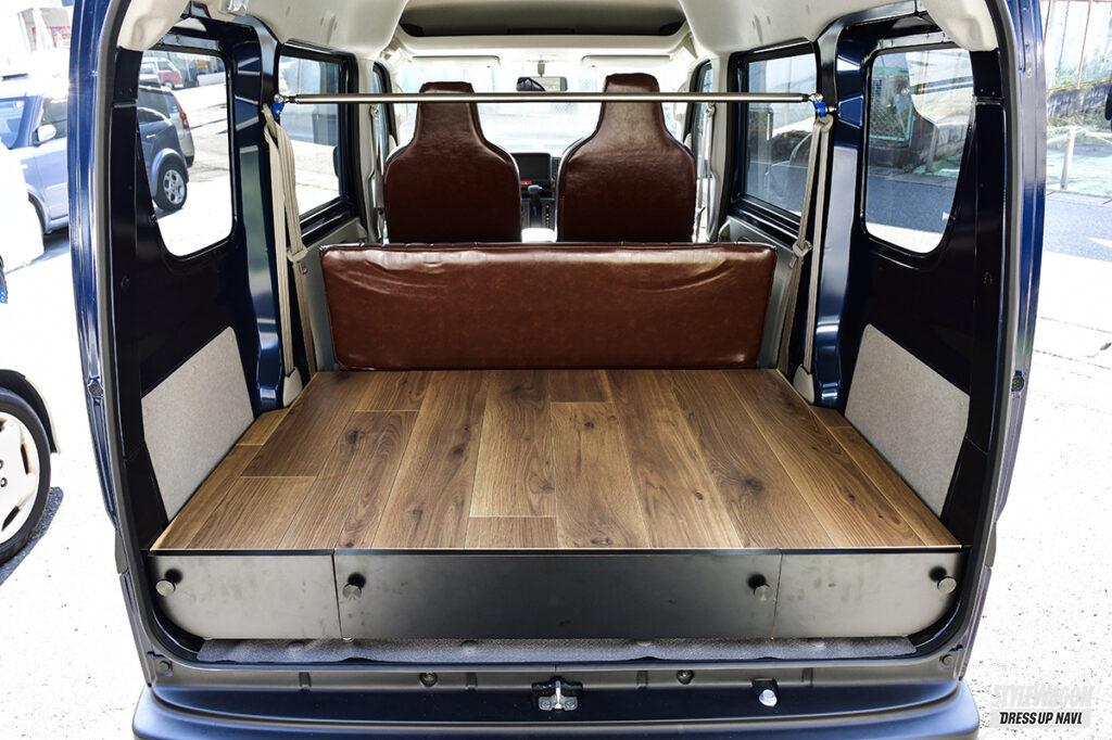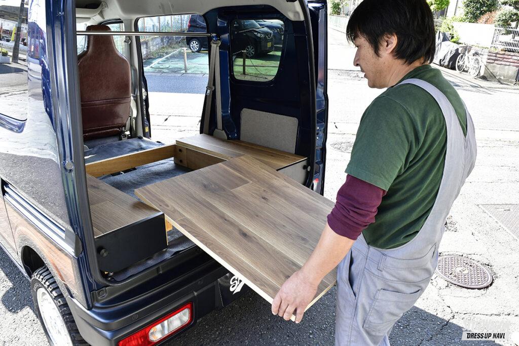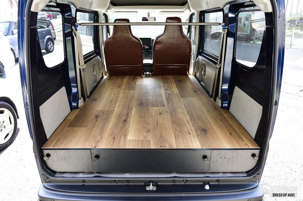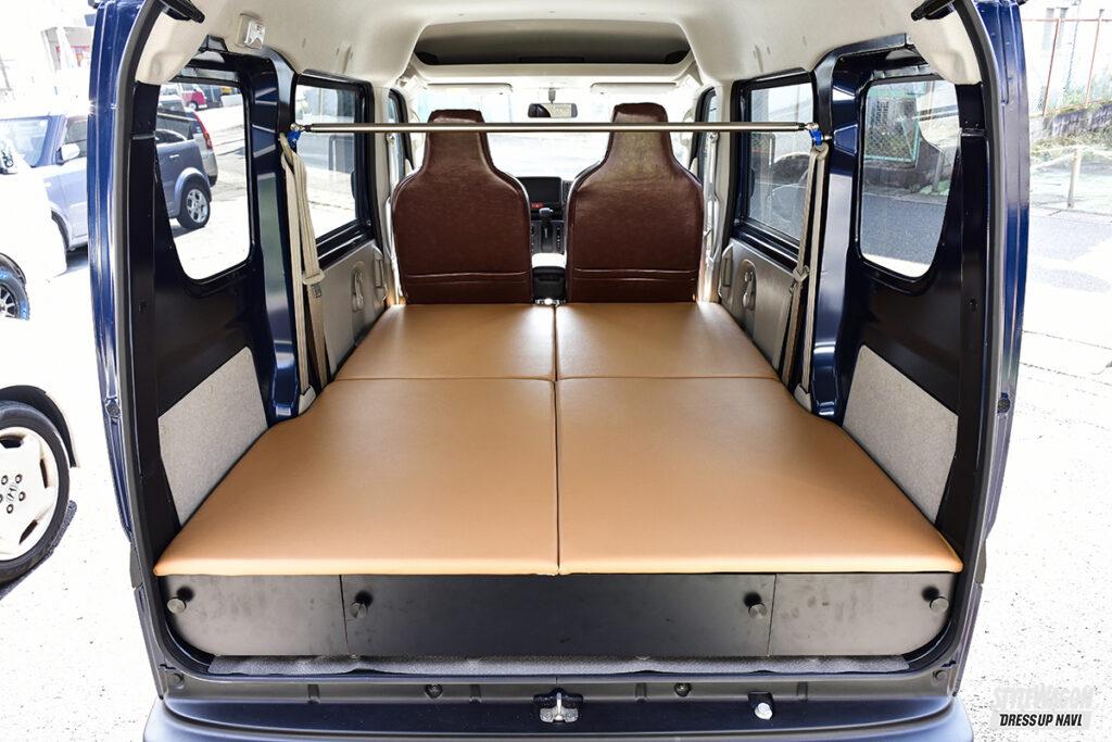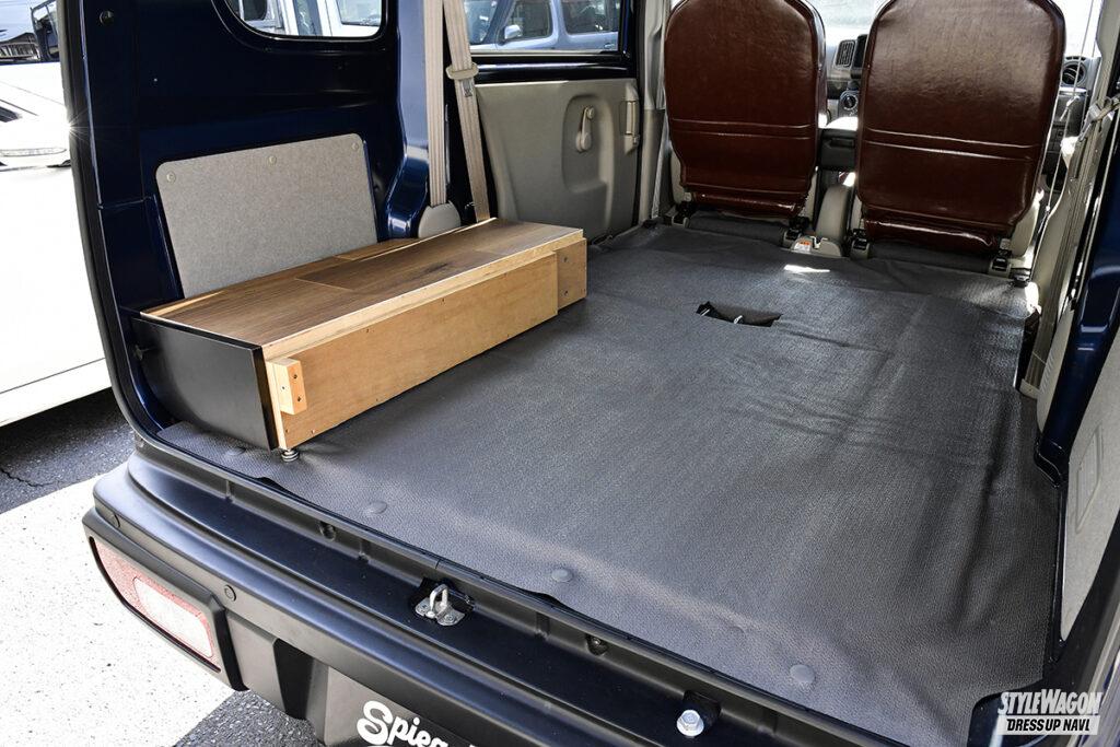 エブリイは軽自動車の規格ギリギリまで広げたボディ形状のおかげで、室内空間の広さはトップクラス。車中泊もできるほどだから、快適に眠れるベッドキットが各社から販売されている。シュピーゲルが販売しているプチトマベースキットは、工具を一切使うことなく簡単にフロアをフラットにできるアイテム。上面は味わいのあるフローリング仕上げだから、キャンプ場など自然豊かな場所にマッチ。4分割構造となっており、簡単に分解できるから後部座席をスムーズに元に戻せる。バラした部品は後部の収納にしまえる。市販のマットレスなどを敷くことで快適に眠れるが、ベースキットと同じ型状のマットがセットになったプチトマキットも販売している。