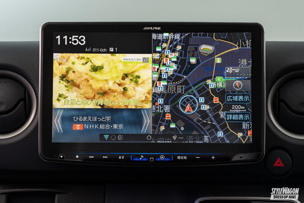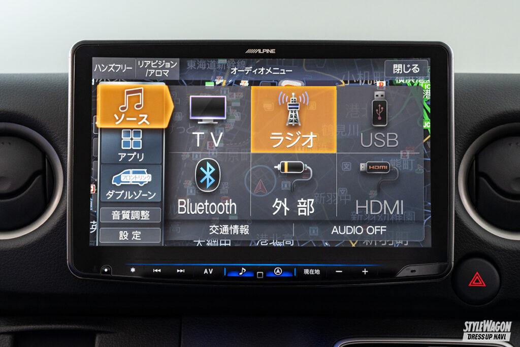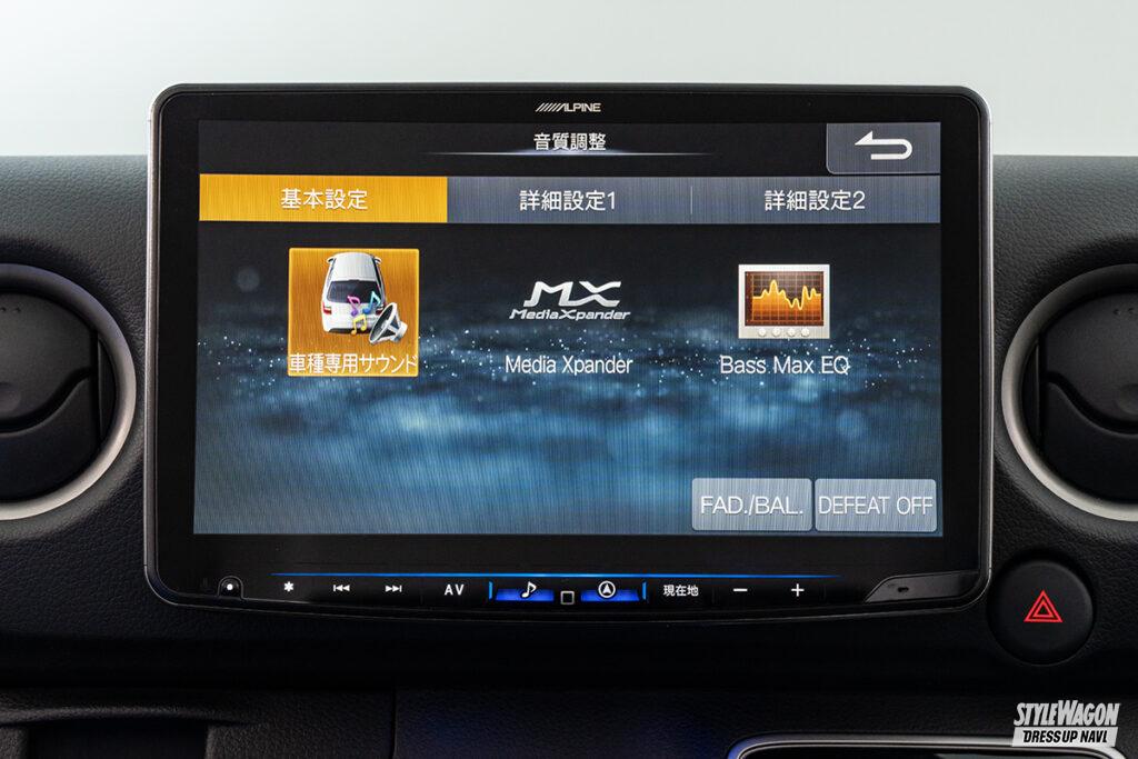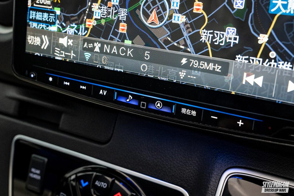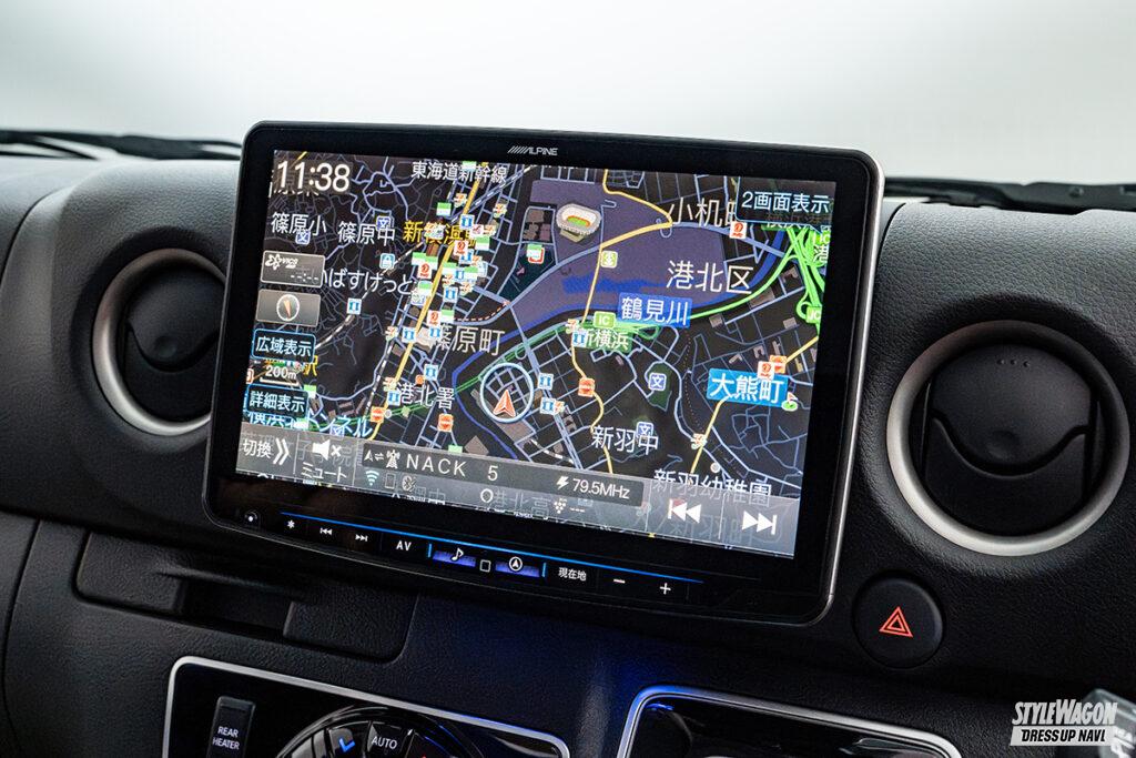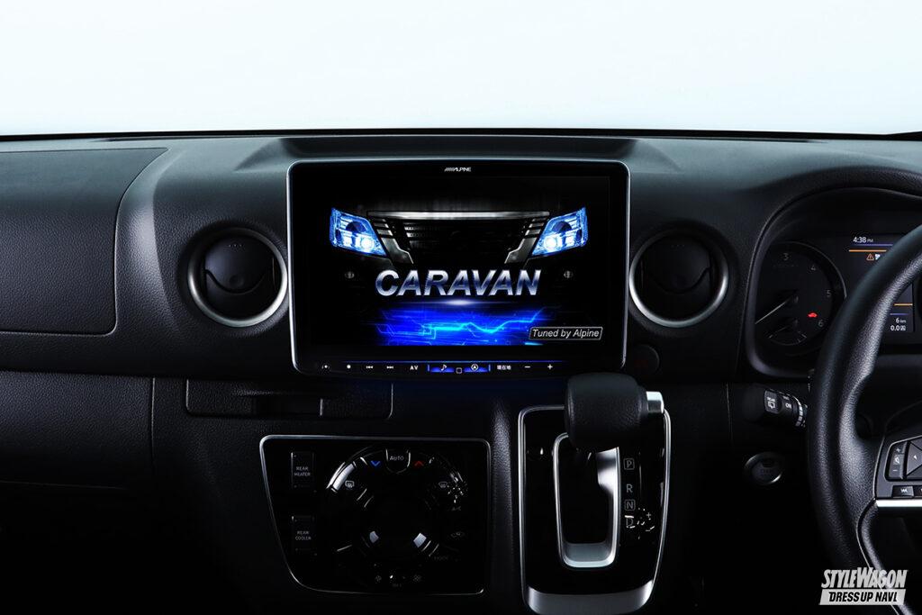 11型の大画面ナビ「ビッグX11」にキャラバン専用モデルが登場。ナビ裏のパネルをセットとすることで、ダッシュボードと一体感のあるインストールを実現。また既存のフローティグタイプのビッグXよりもディスプレイ位置が低く、前方視界がよりクリアになった。キャラバンのイラストが表示される専用オープニング画面や、キャラバンの音響特性を分析し細かくチューニングした音響データも内蔵される。