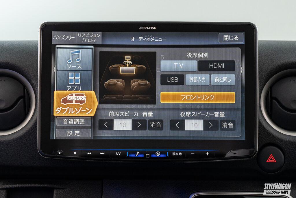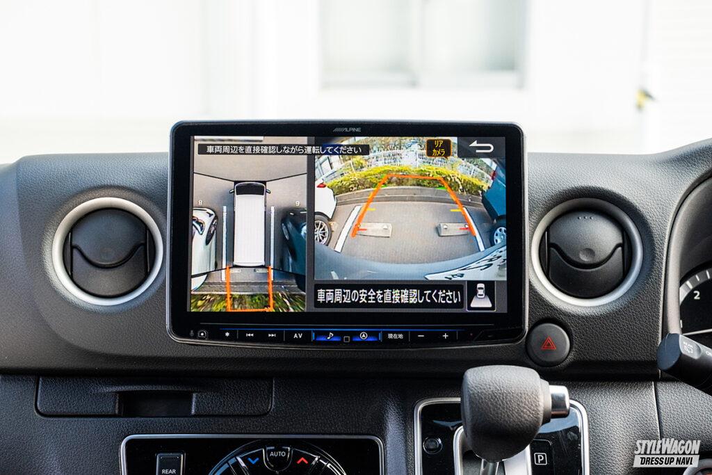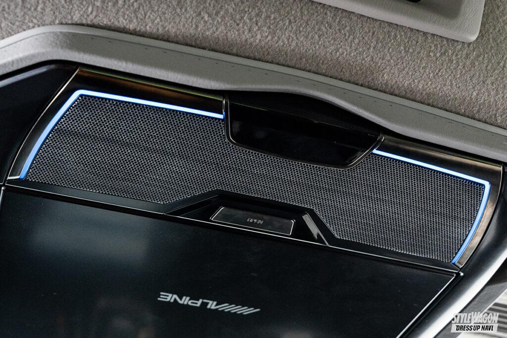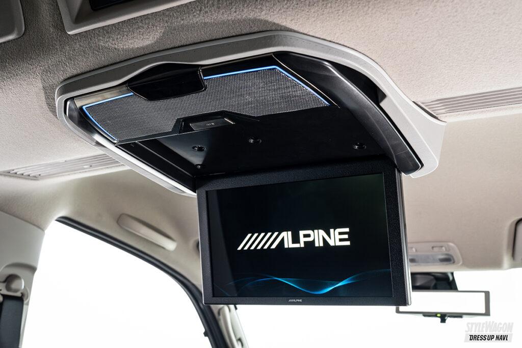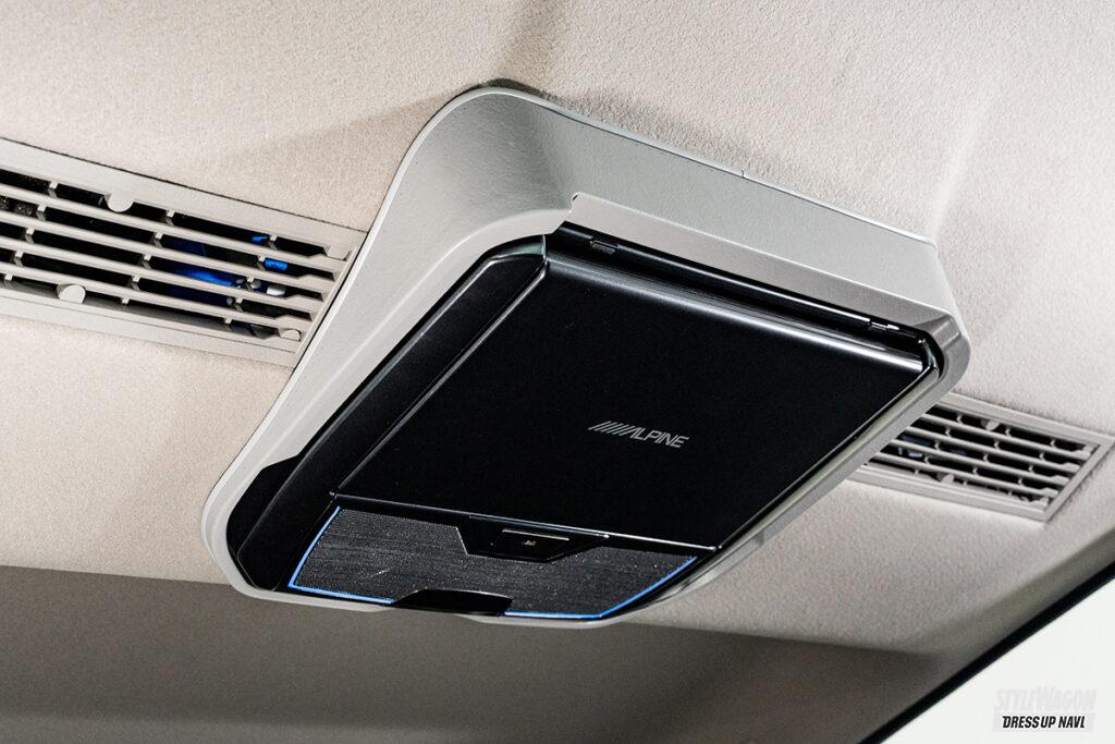 車中泊仕様など後席や荷室スペースを活かしてキャラバンライフを楽しむユーザーにとって、後席用モニターはあると嬉しいパーツだが、ルーフのエアコン吹き出し口などがあり、大画面モニターが装着しにくかった。それらを克服してリリースされたのが、このアルパイン製のキット。装着可能な画面サイズは12.8型。他社が10型までの中、圧倒的な大画面で迫力の映像を楽しめる。