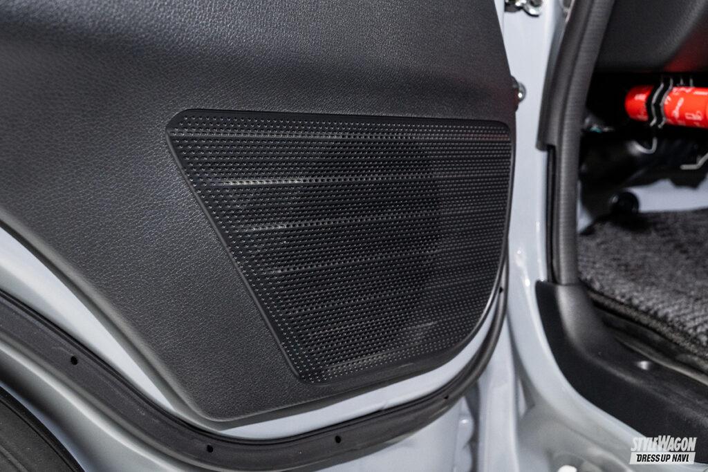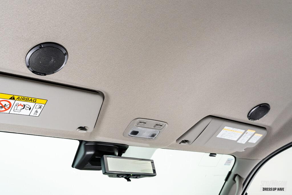 ルーフスピーカー2個、ドアウーファー2個と、それらを繋ぐ専用ネットワークをパッケージ化し、車両特性に合わせた「メティオサウンド」に、キャラバン用が新設定。耳に近いルーフにスピーカーを設けることで、ダイレクトに音が届き、これまで味わったことのないサウンドを体感できる。ルーフスピーカーは中高域、ドアウーファーは低域と再生域を分けることで、メリハリのある音も実現。