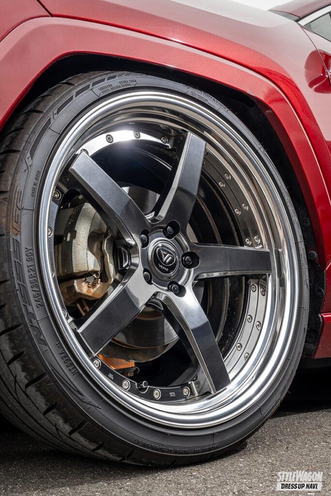 WHEEL●ヴェルズホイールズKCV03(F21×9J+15・R21×9J+5) TIRE●ニットー(245/35) EXTERIOR●PHVグリル、アイライン=GMG TUNING●車高調=イデアル、マフラーカッター=トムス、アーム類=メーガンレーシング