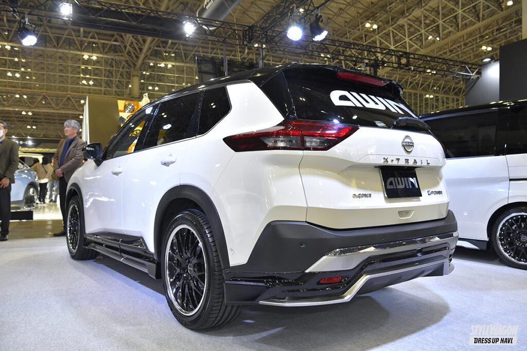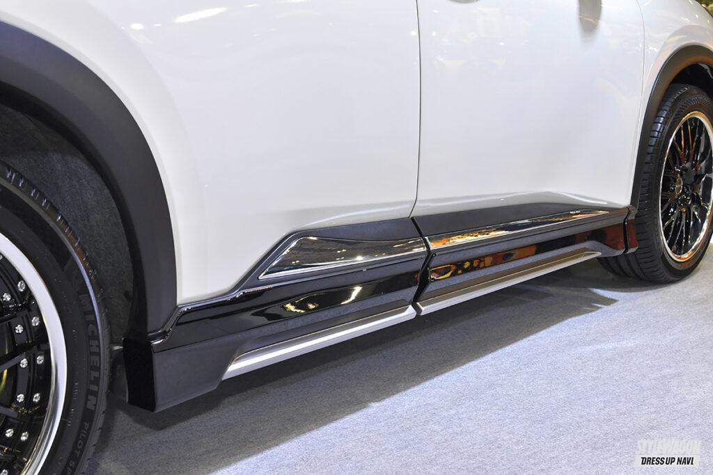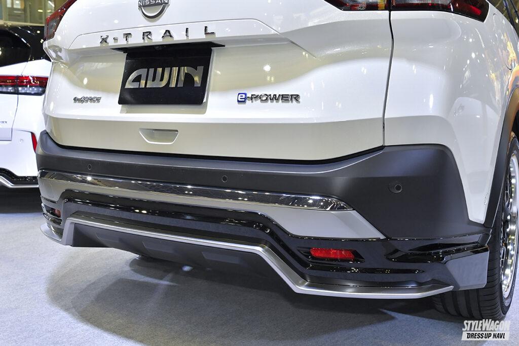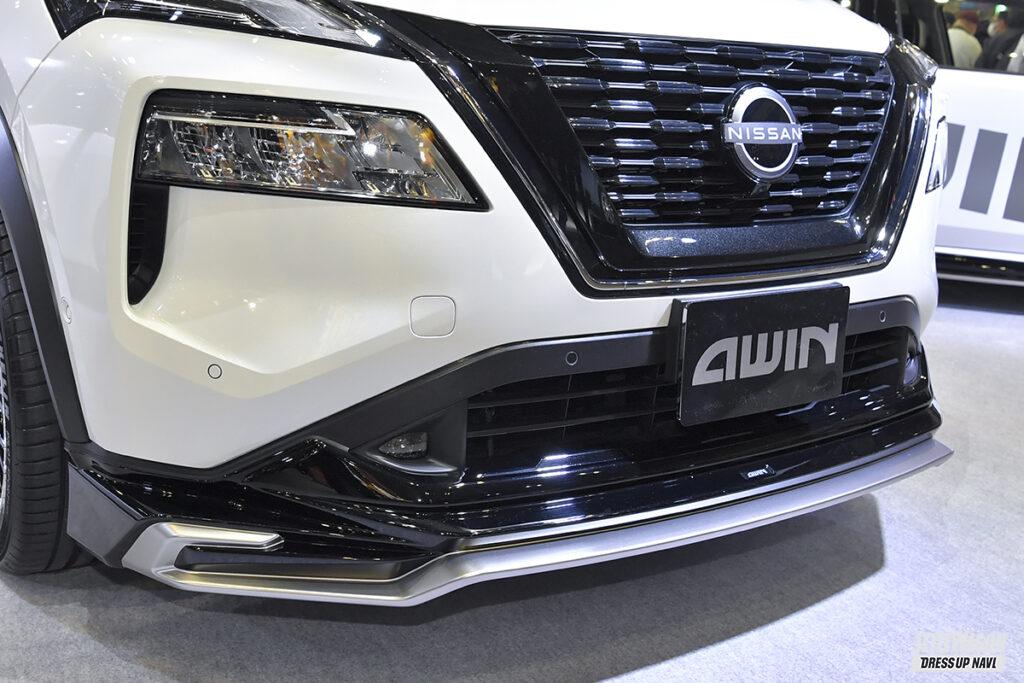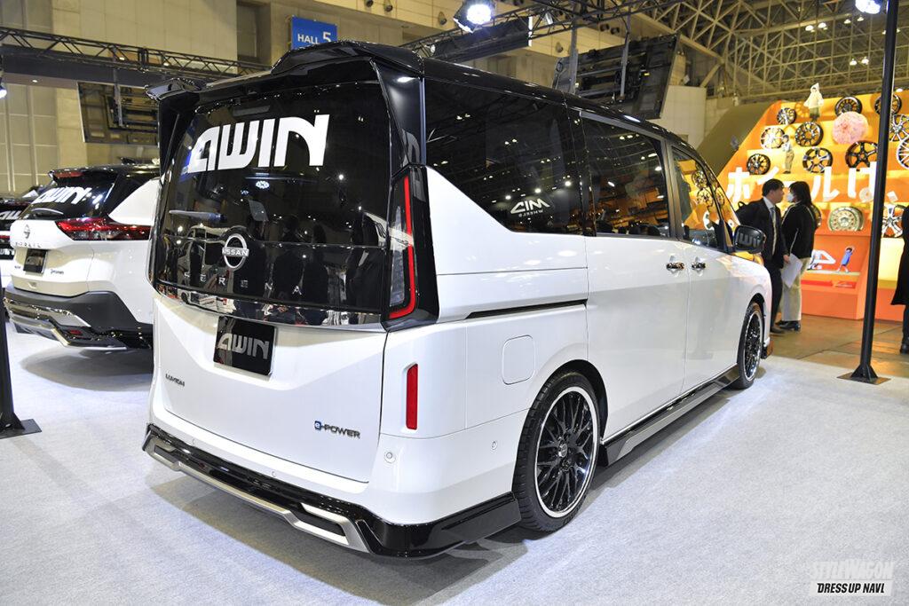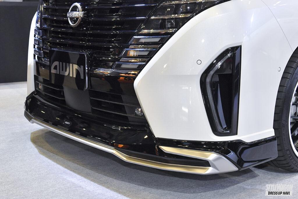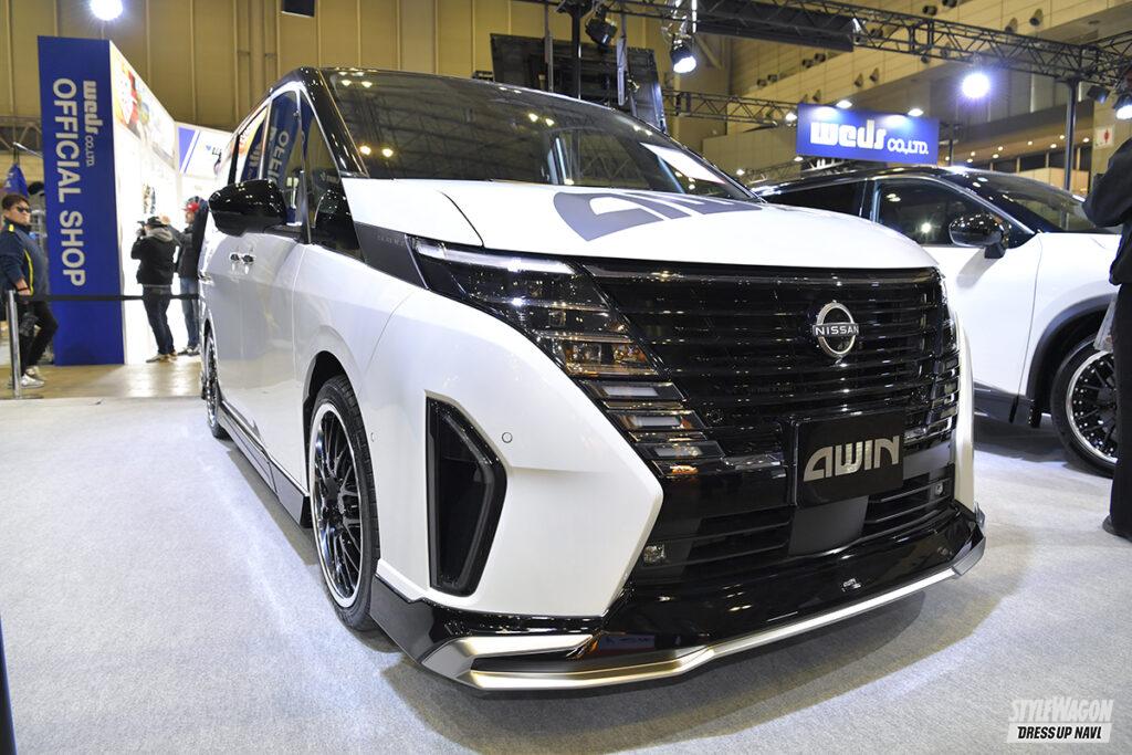 日産が展開する用品シリーズ、「カーライフコレクション」にも指定されているエーウィン。会場にはC28セレナを筆頭に、T33エクストレイル、FE13オーラ後期の3台を出展したが、それらに共通しているのは、“ソードエッジ”と呼ぶサテンシルバーを使ったシャープな造形だ。