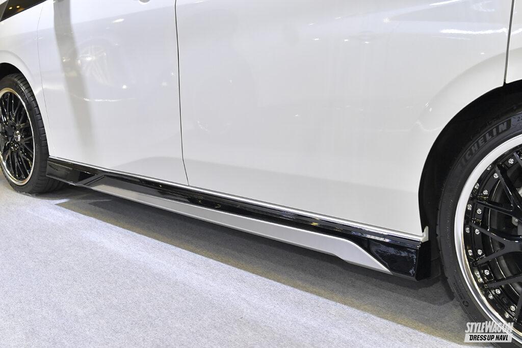 リップラインを沿うように張り出し、凹凸を効かせるなど、カスタムしたという手応えを明確に感じることができるようデザインを熟慮したといい、エアロビギナーの入門としても入りやすいと思いますと担当者。