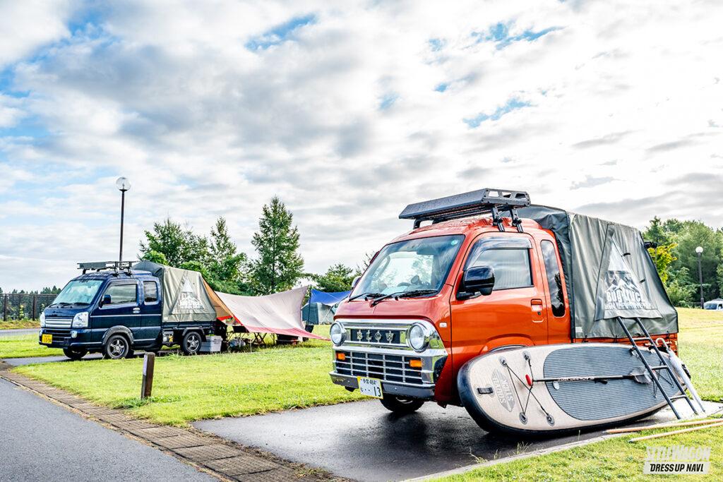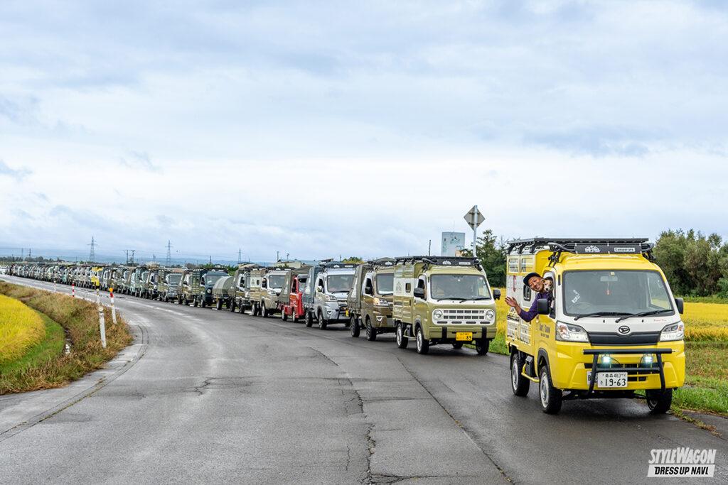軽トラの荷台に独自の幌を張ったバグトラック(姉妹車のパネルバンも含む)に乗る面々が、生まれ故郷の青森は津軽に帰省する、年に1度の恒例行事がバグトラック・ミーティング。1泊2日のツーリング&キャンプで絆を深め合うのでした。