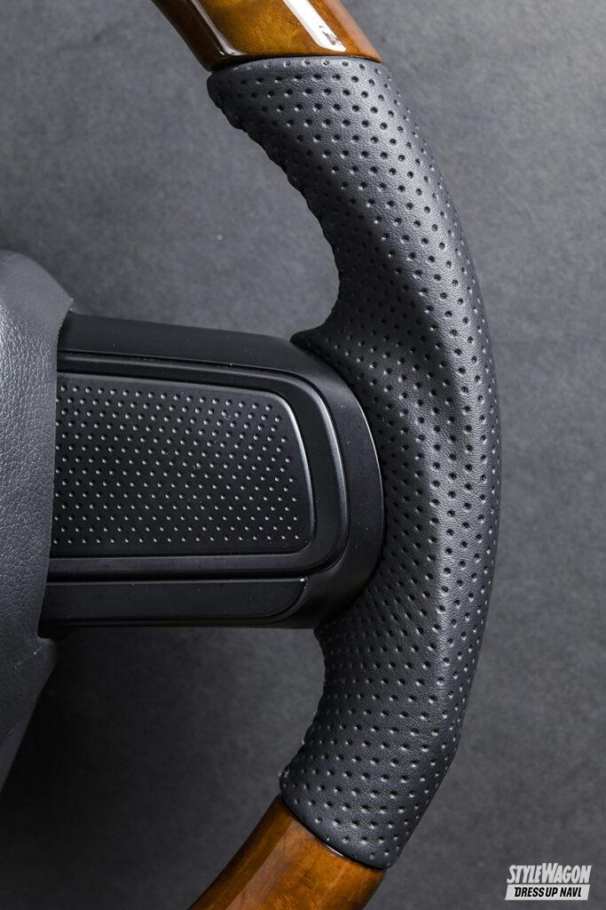 ラインアップは車種ごとに数多く取り揃えている。高級感あふれるコンビタイプは車種別にカラーバリエーションを変えるなど、カスタマイズの方向性に合わせて選べるのが強み。グリップ部の形状もガングリップなどのアレンジを加えたほか、ウッドやブラックなどのカラー部分は仕上げにこだわる。ウッドは8層、カーボンは何と35層ものクリア塗装を施しているためとても艶やか。レザーも妥協せず高級牛革を採用して、高いクオリティを実現。そして安全面においても純正同等の軽量かつ高剛性のフレームを採用して、第三者機関による強度試験を行っているため安心して使用できる。細部まで抜かりがないレアルステアリングの良さを、ぜひ手にとって実感して欲しい。