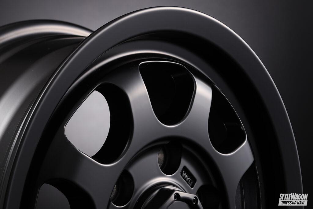 無駄をそぎ落としたシンプル&タフな9本スポークが狙うのは、日本を代表する本格オフローダーたちだ。ジムニーやランクル300&250、プラドといった猛者にジャストフィットするサイズのほか、昨今のアウトドアカスタムで注目されているハイエースサイズもありと、幅広く揃える。それらは手持ちの純正タイヤが基本流用できるサイズであるなど、余計な出費を気にせずブラッシュアップできる点は大きな強みといえる。