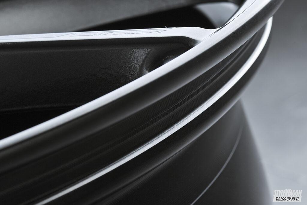 そんなナヴィアに、じつに3年ぶりに登場した「08」はV型の10スポーク。ブランドの生命線となっているライトウエイトコンセプトを追究する術として、AMFと呼ぶリムを鍛えてながら伸ばすフローフォーミングを採用した、軽くて強い1本だ。リムにはタイヤとホイールの空転率を下げ、クルマ本来のパフォーマンスをしっかりと引き出す効果があるローレット加工を施したほか、純正装着率が高まっている空気圧センサーへの対応も万全に行うなど、目に見えにくい部分にも充分配慮している。