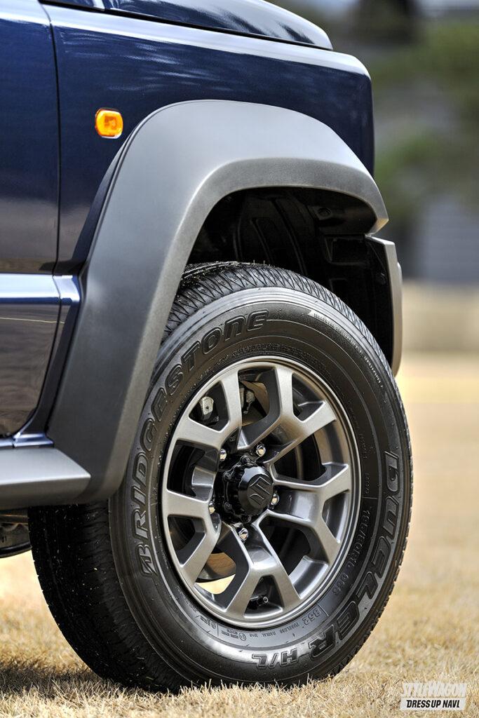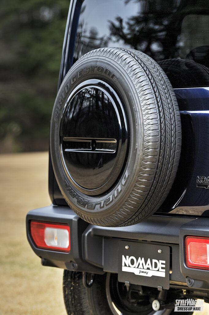 外観にはメッキ加飾を施した5スロットグリルをノマド専用デザインとして採用。ジムニーの最上級モデルとして位置付けられるため、フェイスをメッキ化することで、見た目以上の高級感を手に入れた。