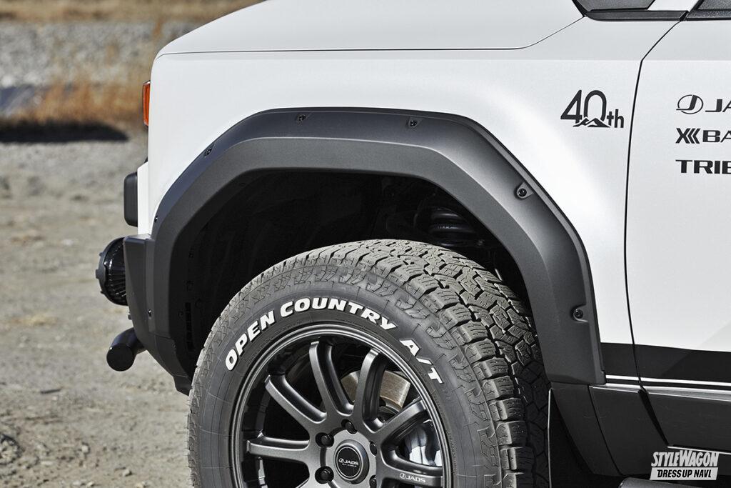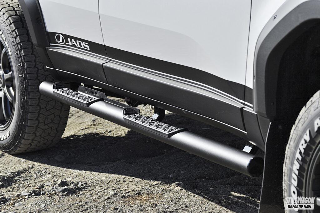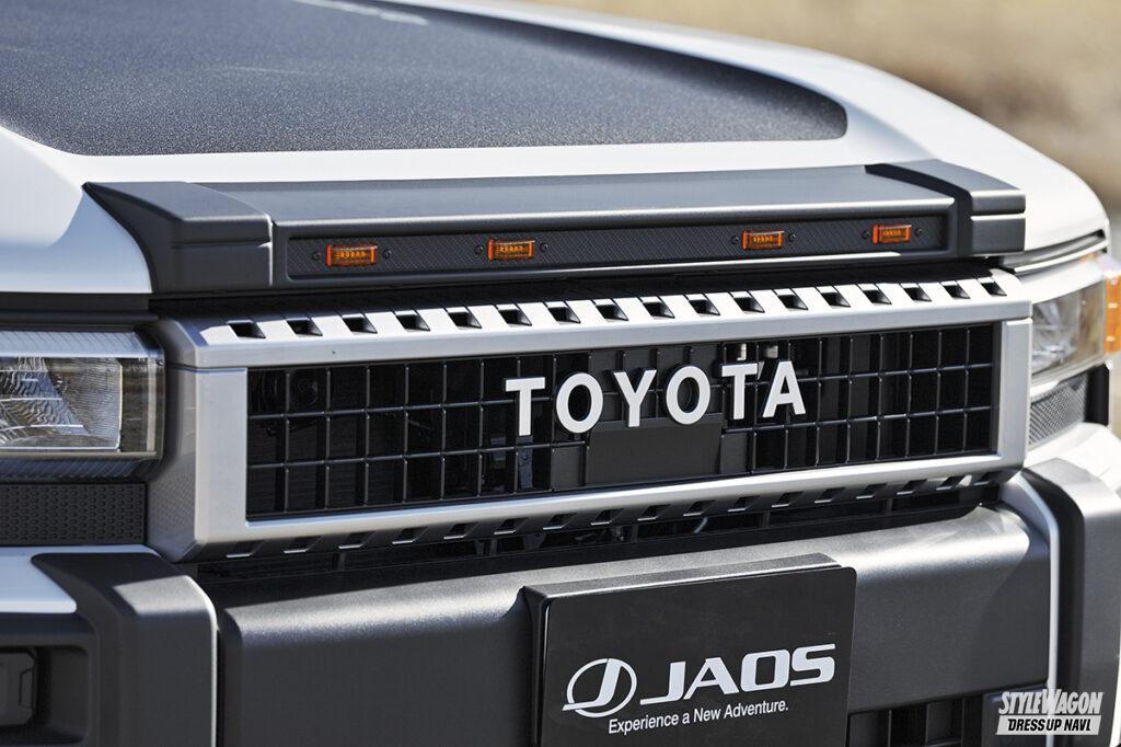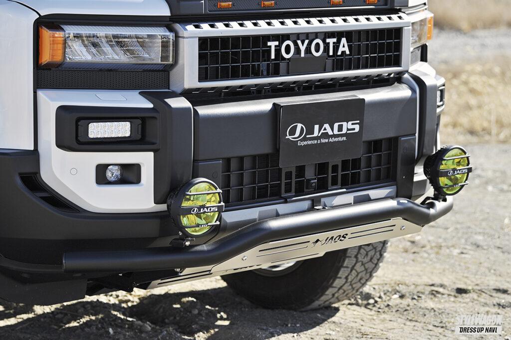 300や70と、現行ランドクルーザー用パーツをどこよりも早く開発してきたジャオスだけに、ユーザーへの納車が進みつつある旬の250もパーツラインアップを充実させている真っ最中。まずボディパーツは上質で都会的なABS製のバンパーガードから始動したが、その一方でアグレッシブなオフロードテイストを求めるユーザーに向けたコーデも抜かりなし。