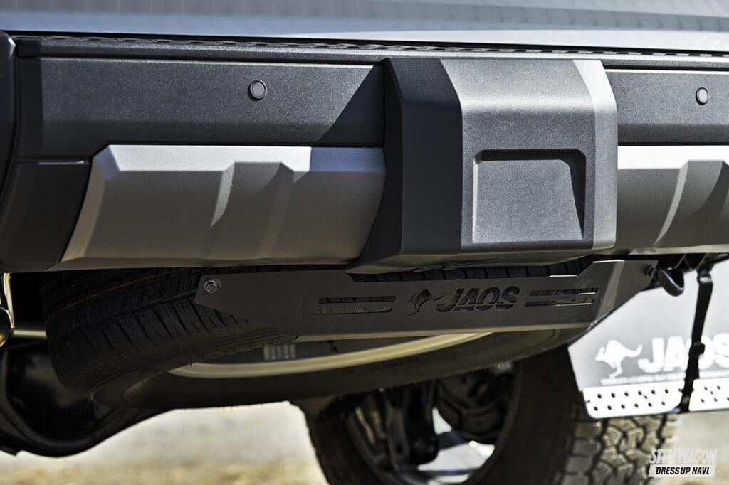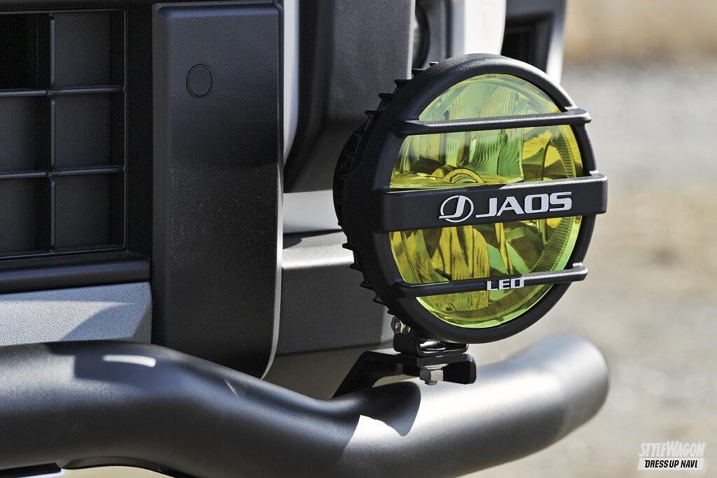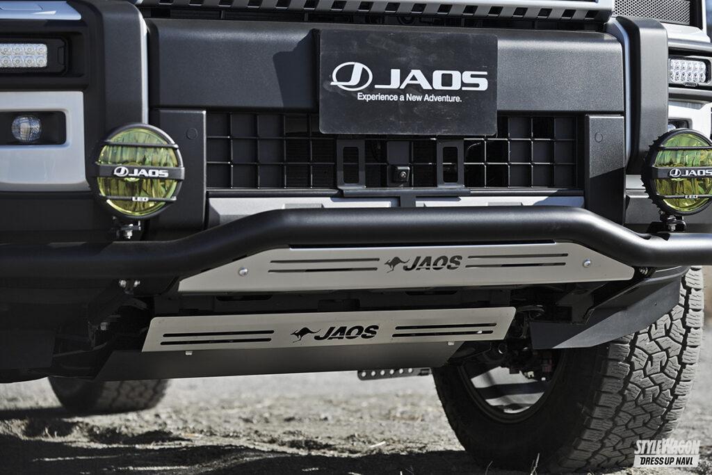 ワイルドなムードを際立たせてくれるのが、豊富な車種ラインアップを揃えているジャオス伝統のフロントスキッドバー。絶妙な曲げ加工を施したステンレス製のバーがフロントバンパーのボトムにゴツさを与え、オフ車らしさを強めてくれる。またジャオスの抜きロゴが入った付属のステンレスプレートもバーの存在感をさらに高める。そしてスキッドプレートⅢにリアスキッドプレートと、下回りに個性を与えるパーツも用意。他にも四駆の定番アイテムとして浸透しているマッドガードⅢ、ダミーボルトが効果的なフェンダーガーニッシュタイプXなど、全体にたくましさを与えるパーツが豊富。ぜひ自分好みのスタイリングを楽しんでほしい。
