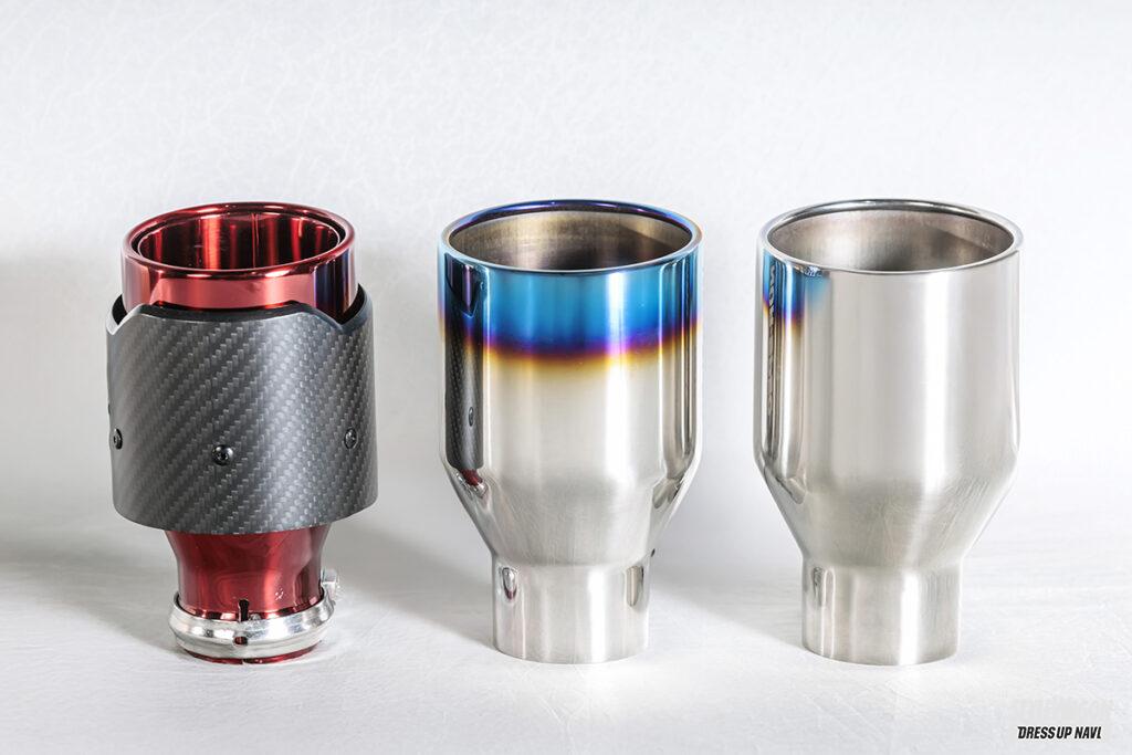 発売は2025年春頃に「車高調」から始まる予定だが、スポーツカーでもならすブリッツらしく、まずはダウンタイプを先行して発売。夏頃に第2弾としてアップタイプを追加するとのこと。そのダウンタイプとほぼ同時期に発売できるという「マフラー」は、出口の仕様を4種類から選べるリアピース交換型。フォージドカーボンと呼ぶ、砕けたカーボン柄のテールも用意されたアピール力の高さも見所だ。