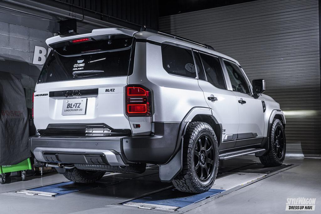 ダウンタイプを先行開発中の車高調は、新しいフレームの採用により高まった剛性感を意識しつつ、硬すぎずソフトすぎずのちょうどいいバランスを追究。開発済みのランクル300や、好評の150プラド用の知見も活かしながら、プラド比で100㎏以上も重い2t超えボディにあった、快適な乗り心地の確保を目的に開発が行われている。