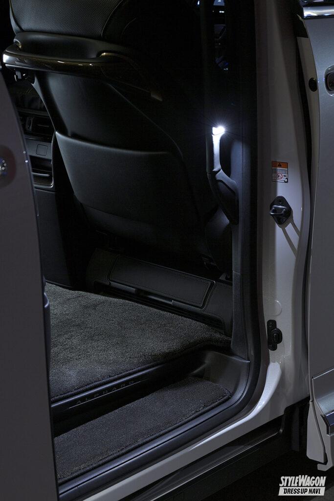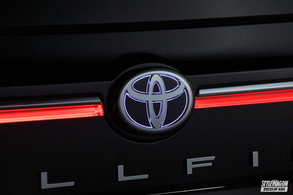 最新作の「LEDトランスワード」は、新型のアイデンティティであるリアの車名エンブレムを幻想的に光らすことで、最上級に相応しい高級感やお洒落さを与えてくれる優れモノ。スマートにインストールされた立体感のあるガーニッシュは、非点灯時の純正然とした佇まいに貢献し、点灯時には均一で絶妙な美しい光りがエンブレムを際立たせ、さり気なく存在感を高めつつステータス性も引き立ててくれる注目アイテム。また、ジュナックには人気レディストシリーズのフォグランプやLEDトランスエンブレムなどをはじめ、カーゴランプやウェルカムランプなど、プレミアムな印象を高めるとともに利便性も兼ね備えた充実のライティングパーツが揃う。40系の光モノを狙うならジュナックをチェックだ。