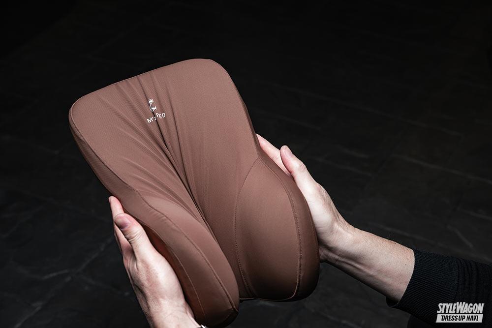 長距離ドライブのお供にぜひ活用したいアイテムが、エムズスピードのランバーサポート。運転中の腰と首の負担を軽減してくれる人間工学に基づいたデザイン設計、そして身体を優しく包み込みような心地良さを実現するクッション材を内蔵させることで、腰と首に抜群の安定感と快適な座り心地をサポートしてくれる。また本体表面の触り心地も最高で、モチモチした質感は手放せないほど病みつきになること間違いなし! クルマの運転時だけでなく、新幹線や飛行機などでの移動時も使いたくなる逸品だ。本体カラーはブラック、ブラウン、エンジの全3色をラインアップ。内装色とのコーディネイトを考えて選べるのうれしい。