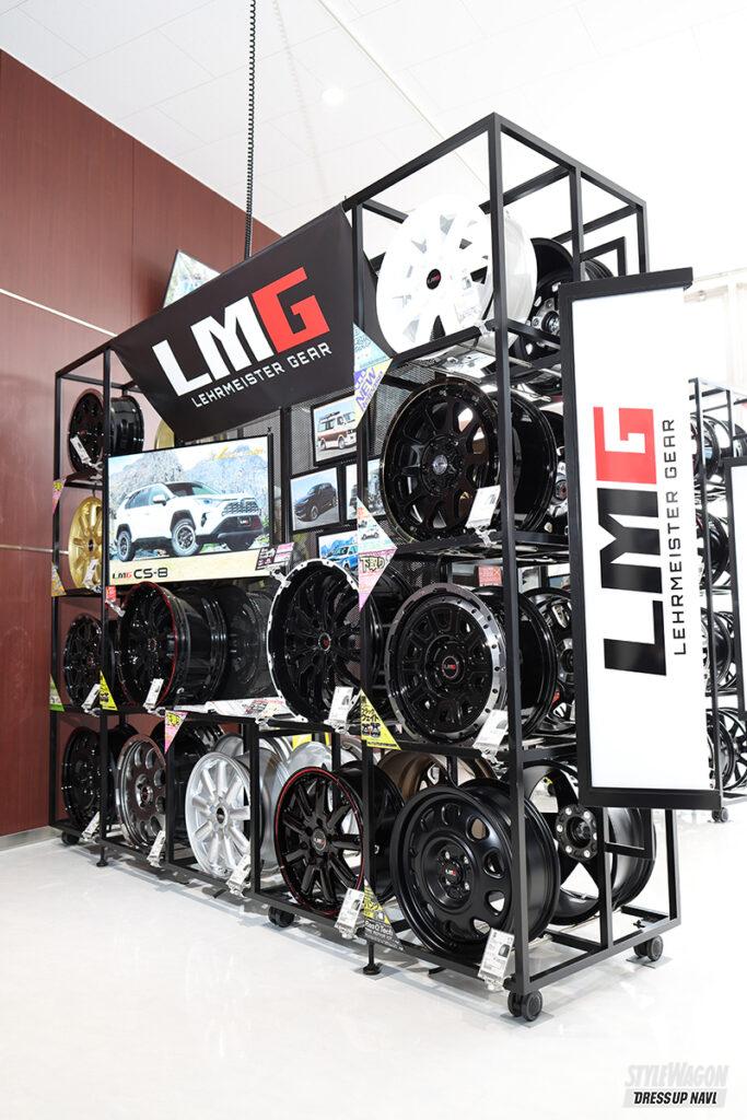 品ぞろえ充実の大型店舗、タイヤ&ホイール館フジ スペシャルブランド富谷店。四駆、SUVをターゲットにしたアイテムも多数並べているなど、250乗り要注目のショップだ。