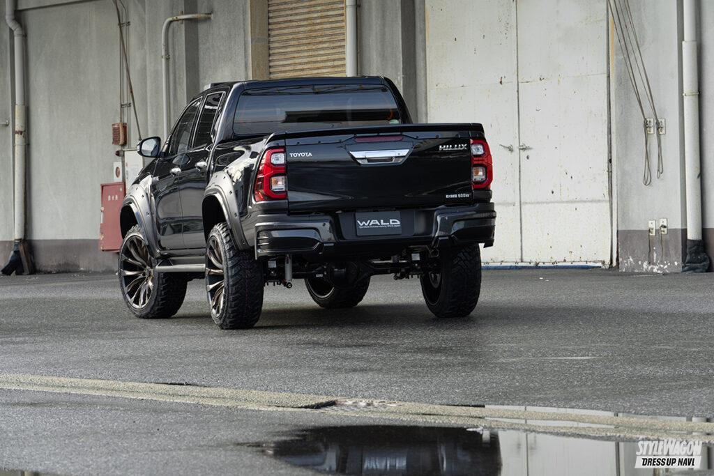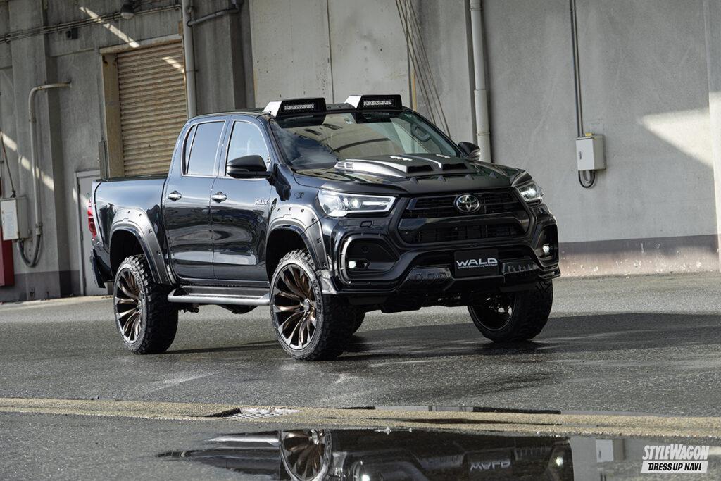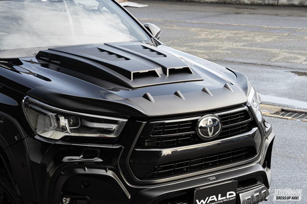 和製チューナーとして名高いヴァルドの提案は、他に類を見ないワイルドなルックス。片側55㎜ワイドを実現するオーバーフェンダーやボンネットに追加するスクープカバー、US感を高めるフロントルーフスポイラーなど、圧倒的な変わり映えを実現するキットを多数ラインアップする。ほかにも8ポットブレーキやサイド出しマフラーといった機能パーツも用意し、ハイラックスカスタムをサポート。バンパー級の変貌度のフロントハーフは残念ながら生産終了だ。