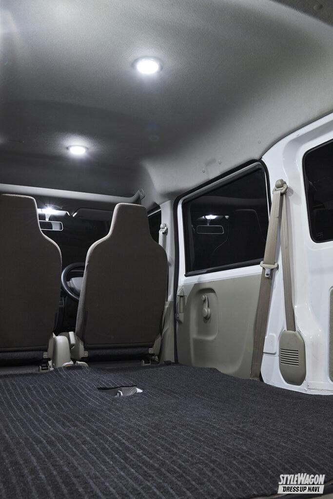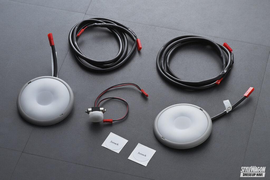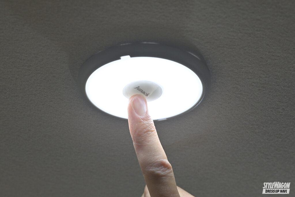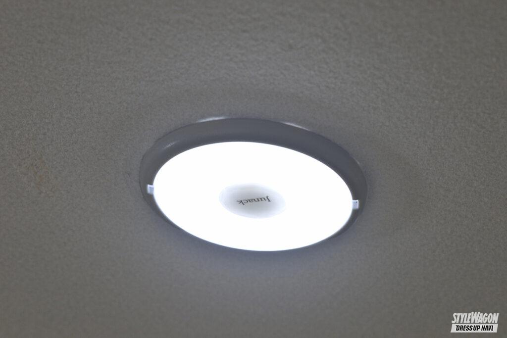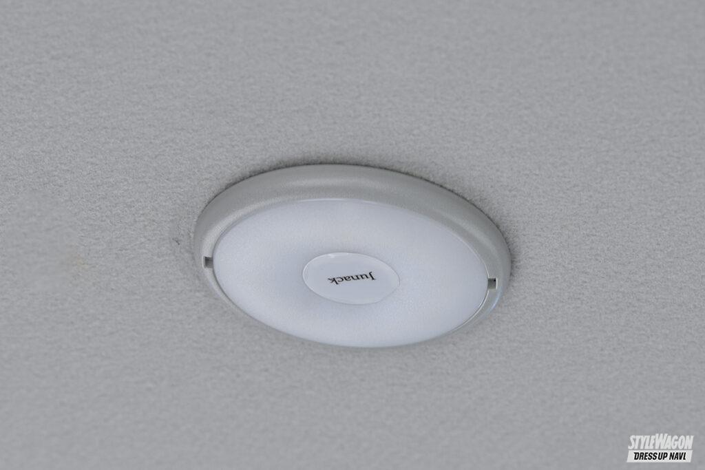 商用車は仕事でも遊びの場面でも暗所での作業が特に多く、純正のルームランプだけだと暗くて視認性も悪く心許ない。ジュナックでは、そんな車室内をくまなく照らし出す追加LEDランプ「レディストワークランプ」を設定し、夜間作業においての利便性を格段にアップしてくれる。天井のクリップ部を利用し追加するワークランプは、高輝度LEDと光を効率的に拡散するレンズによって、隅々まで光を送り、荷物が多くてもしっかり照らしてくれる。さらには、防眩しつつ柔らかな明るさを実現しているので、眩しすぎて目が痛くなるなんてことも心配無用だ。