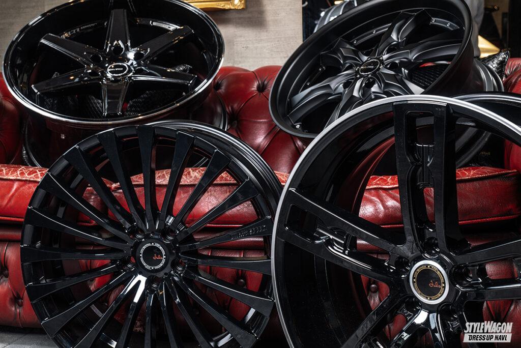 「デザインを決めたら、サイズや色をクルマに合わせて決めていくのがホイール。シルバーやブラックポリッシュ(以下、ブラポリ)、ひと昔前であればクロームメッキなども人気の高い色でしたが、それらの色に共通しているのはよりホイールの存在をアピールできるということ。ホイールのデザイン性を際立たせるためにブラポリを設定するモデルも多く、王道であり人気のカラーということに間違いはありません。ただそういったニーズだけでなく、”カッコよくしたいけど、あまり派手にしたくはない”といった声もあり、そんなお客様への提案でもあったのが”ブラックシリーズ”。それまでポリッシュ系の設定だった多くのホイールに”ブラック”を設定したことで、ブラック指名買いのお客様も増えてきました」とエムズスピードの津田さん。