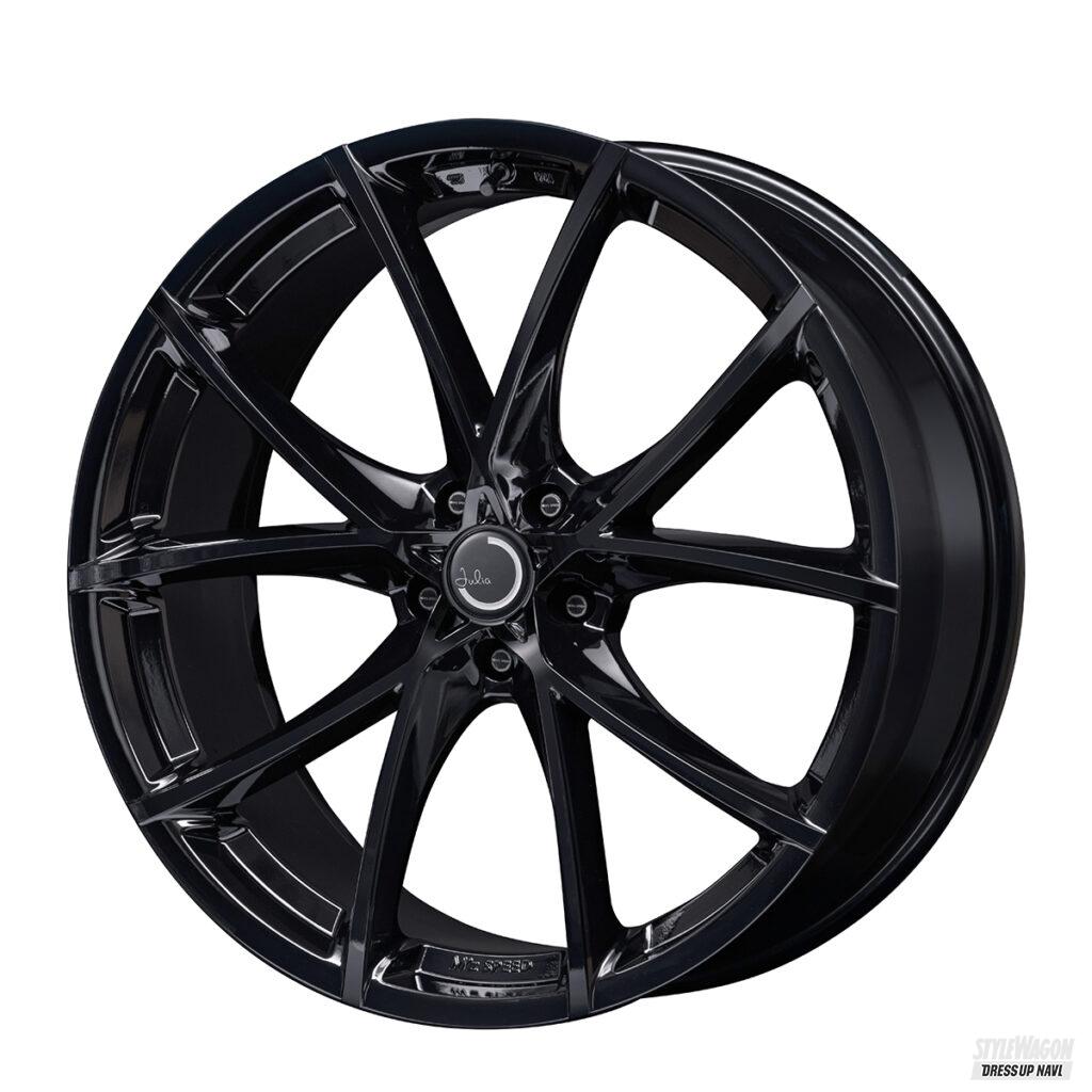 「スポークのラインをより細く魅せるためにブラポリで開発を進めたのが”ジュリアフルスロットル”。スポークライン天面を切削(ポリッシュ)することで、スポークの脚長感、さらには大口径感もアピールできるモデルとなっています。そんな”ジュリアフルスロットル”に新設定したのがブラックですが、同じデザインであってもその表情は全く異なります。特に最近はメッキパーツを最初から装備されているクルマが増え、足元までギラギラさせたくないというお客様はブラポリよりもブラックを選ぶ方が多いです。また足元をブラックでコーディネイトすると全体が引き締まって見える効果が非常に高い。ファッションと同じように、クルマのカスタムにも好みがあると思います。自己主張の強い派手なコーディネイトに対して、全体のトータルコーディネイトを考えた大人系のコーディネイト。ブラックカラーは、まさに後者の方に推したいシリーズ。お客様の選択肢を増やすためにも、“ブラックシリーズ”のさらなる拡充も考えています」。