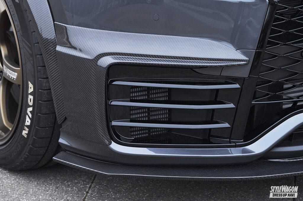 開発の念頭に置いたのは、軽快な走りを意識させる最小限の大きさで存在感を高める„ミニマイズカスタム"。標準グレード用では日常シーンと自然に馴染むシンプルさを、スポーティグレード用では普遍性と実用性は当然、構成パーツ全体でリアルカーボンを充実させるなど、視覚的にもスポーツを意識させるわかりやすさを追究と、満足度の高いキットを揃えた(標準グレード用にもカーボンはあるが、それは一部パーツに限られる)。