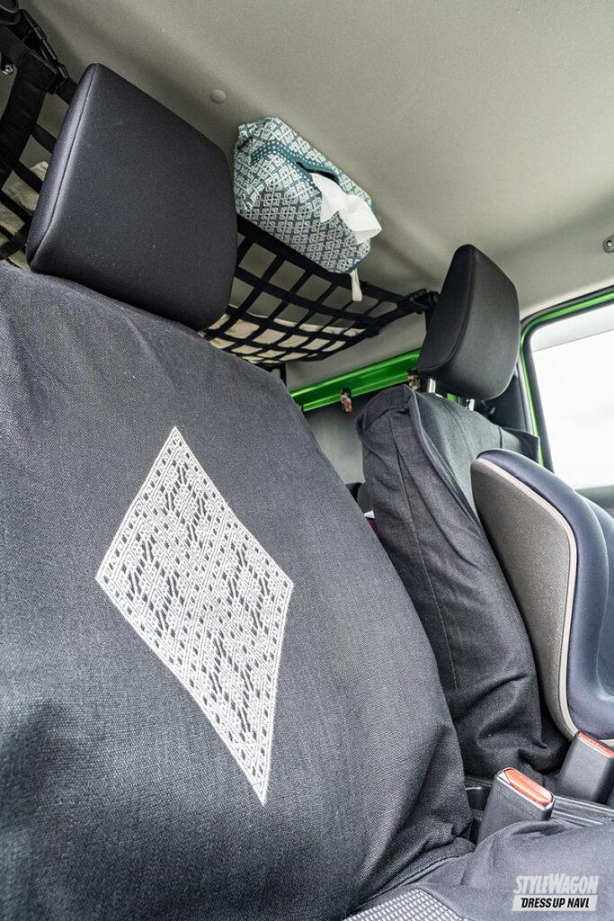 昨年1月に車両を手に入れた段階で「カスタムに関してのイメージは全てコンプリートしていました」と語る旦那様。奥様のジムニーグランマさんのために、1台丸ごとカスタムを敢行。「人と違うクルマに乗りたいという思いを形に!」とデミオ純正グリーンメタリックオールペン、ダムド·リトルBの前後にビヨンドジャパンのサニーフェイスグリルを合わせる。