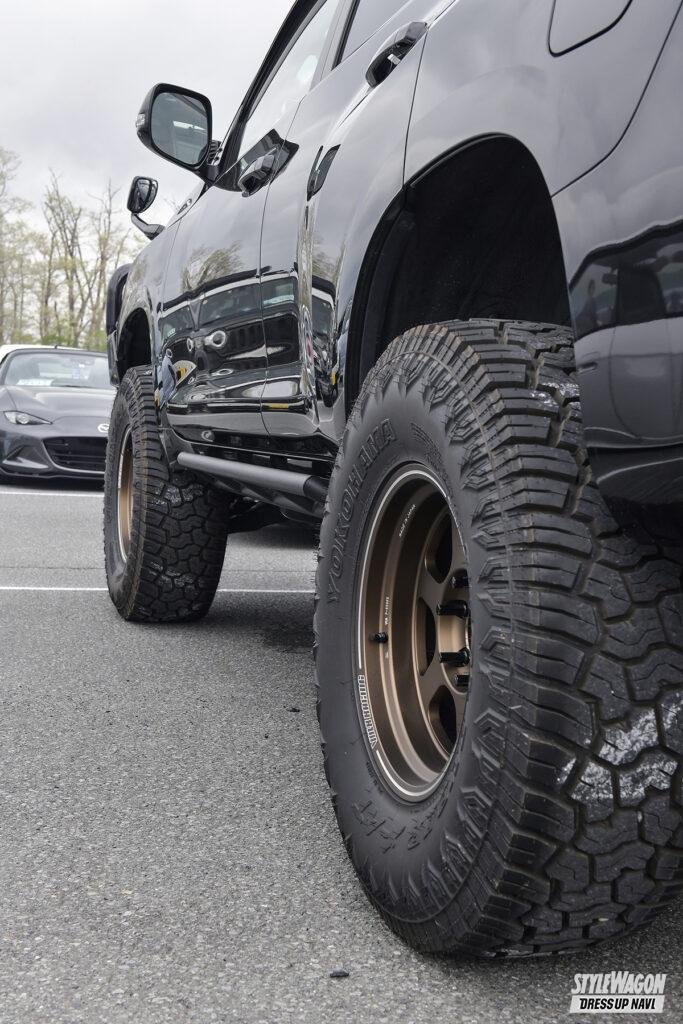 レイズファンミーティングに参加していたプラド乗りのマサプラさんとは職場が一緒。プラドを購入したのはけーたさんが先で、ARBのパーツでスキのないオフロードスタイルを実現。ホイールは昔乗っていた86にも装着したことから、思い入れのあるTE37。プラドは様々なホイールに交換したが、結局はTE37に戻ってしまった。「ブロンズのディスクは黒いボディにすごく合うと思う」。