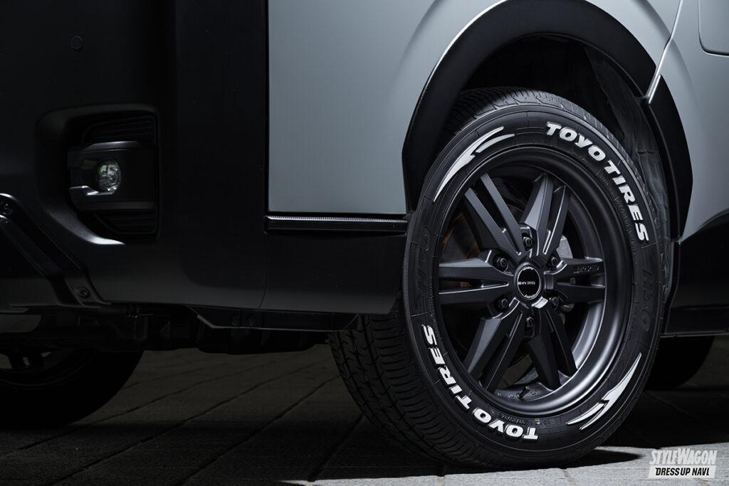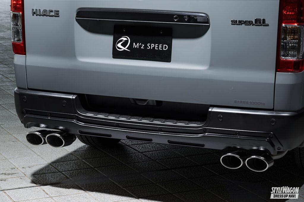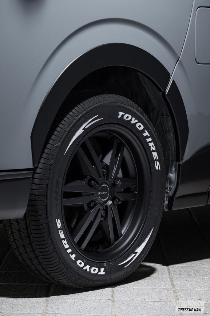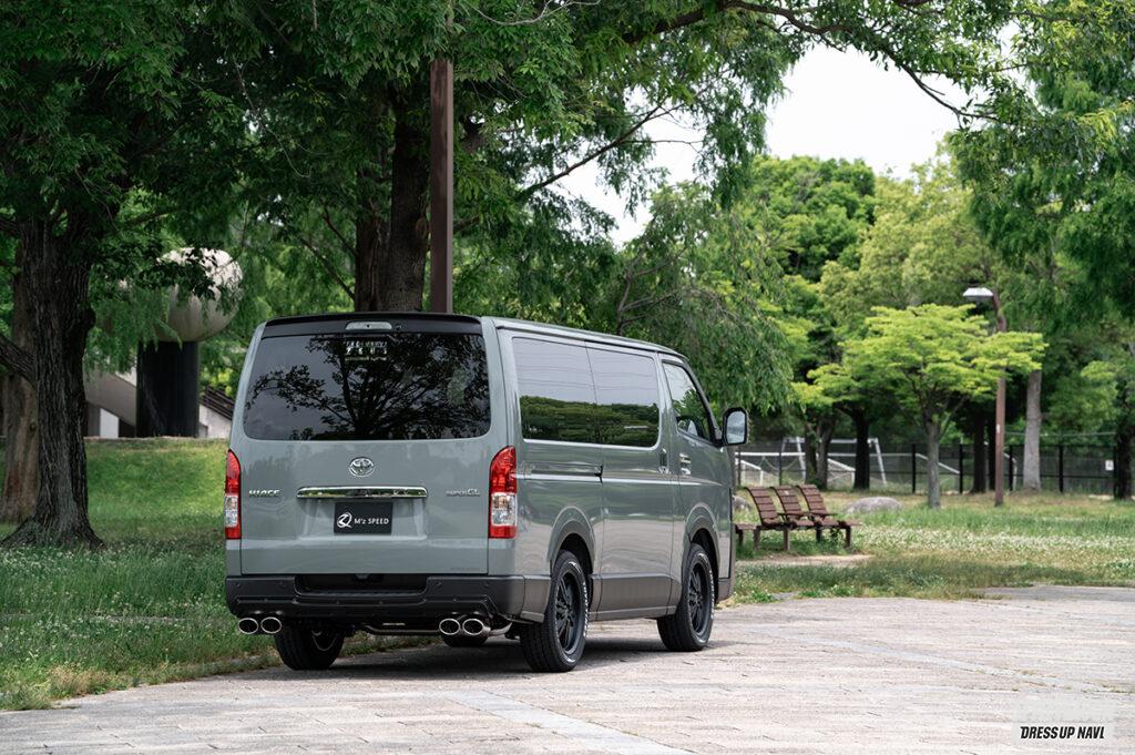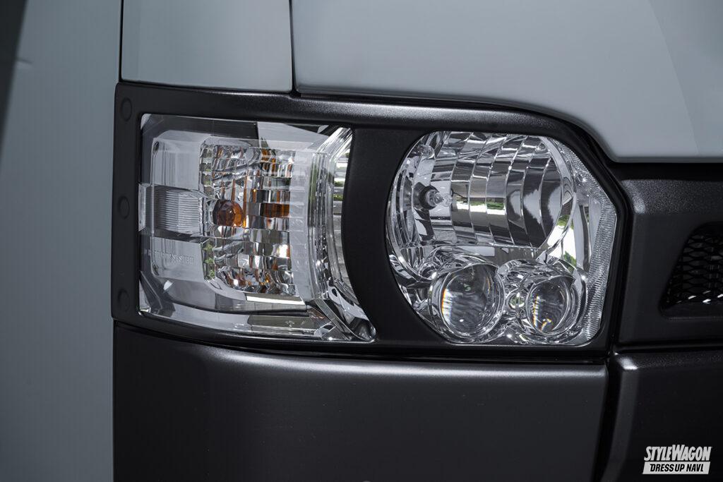 ドレッシー路線のグレースラインとは別に、昨今ますます注目度を高めているオフスタイルを意識した、独自のオフ系エアロも提案するエクスクルーシブゼウス。クロスラインは、走る路面状況を気にしない、ハイエース本来の実用性に配慮したコンパクトなサイズとした実用的なボディキットだ。オフを感じさせる、それっぽさを盛り込んだ意欲作となっている。
