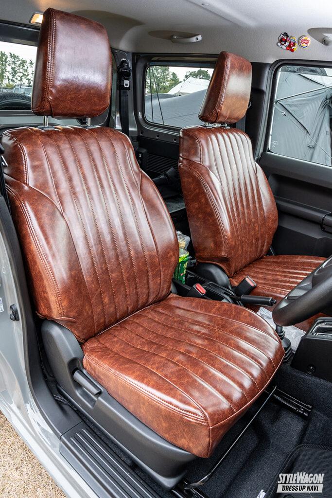 夏以外の季節を選んで年に5〜6回はキャンプに行くという二人。よく行くキャンプ場は関東近県だという。なお、ジムニーは夫婦二人で買った初めてのクルマ。なので、二人でゆっくりとドレスアップを楽しんでいる。ターゲットは、まずは内装。シートカバーはショウワガレージを選び、シフトノブやペダルも変更している。「次はマフラーを変えてみたいですね。外装はこれからなので、今日は皆さんどんな風にジムニーをイジっているのか見学も兼ねて遊びに来ました♪」とツカモトさん。