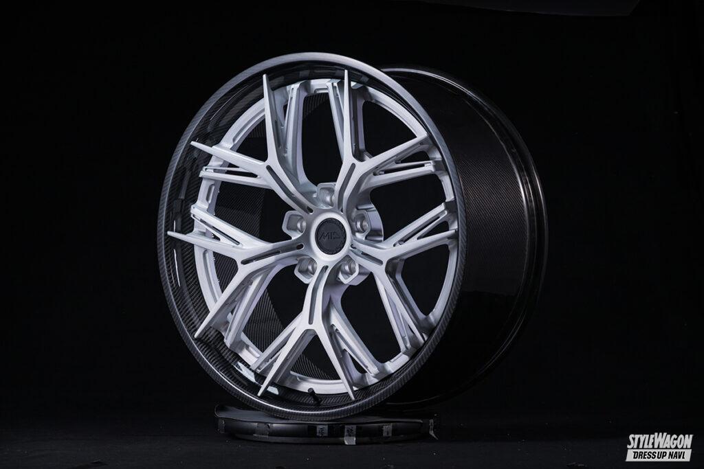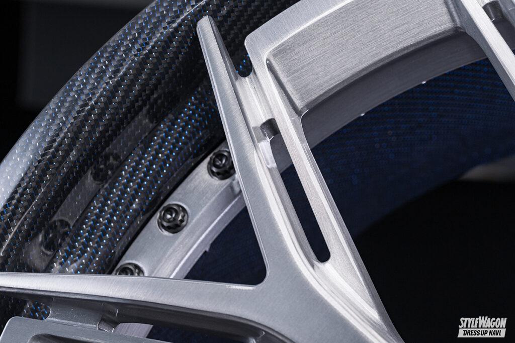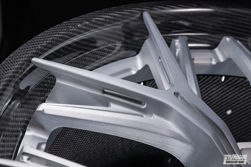 今年の東京オートサロンで発表された際には3つのデザインモデルが披露されていたが、実はこのエレメントシックスで確定されている要素は鍛造削り出しディスクであることと、カーボンリムであることのみ。それ以外の要素はすべてオーダーが可能で、ディスクデザインすらオーナーと同社デザイナーとの打ち合わせを踏んだうえで、自由に造形することまで可能。カーボンリムに関しても、その柄目や色味は自分の好みに合わせて自由にオーダーできるのだ。