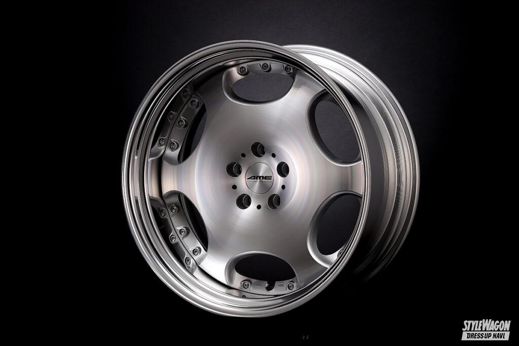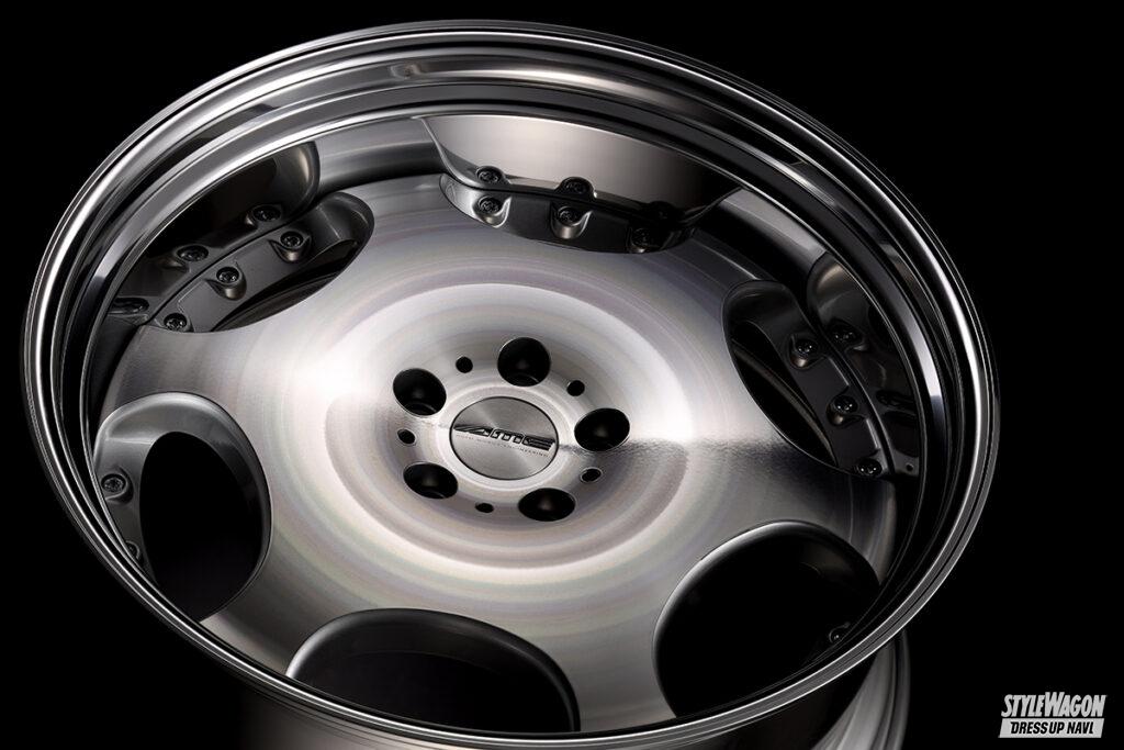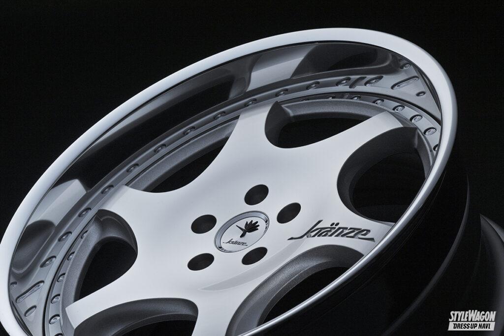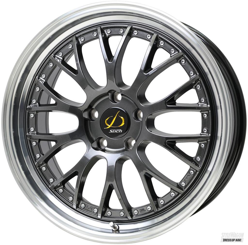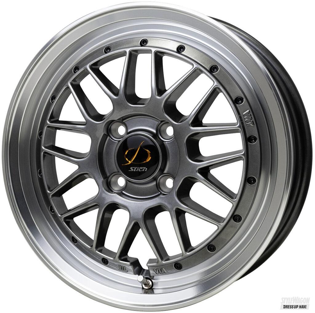 1980年代後半のビッグセダンブームとともに、ホットスタッフコーポレーションの自社ブランドとして生まれたシュティッヒ。その第1作目となるメッシュモデルをインスパイアソースとして選び登場したのがメッシュNRと、そのKカー・コンパクトカー用のメッシュRM。ディスクデザインはそのままに、裏側は最新の加工を施しホイールのバランスと軽量化を考慮した設計。センターオーナメントは当初のデザインを採用。