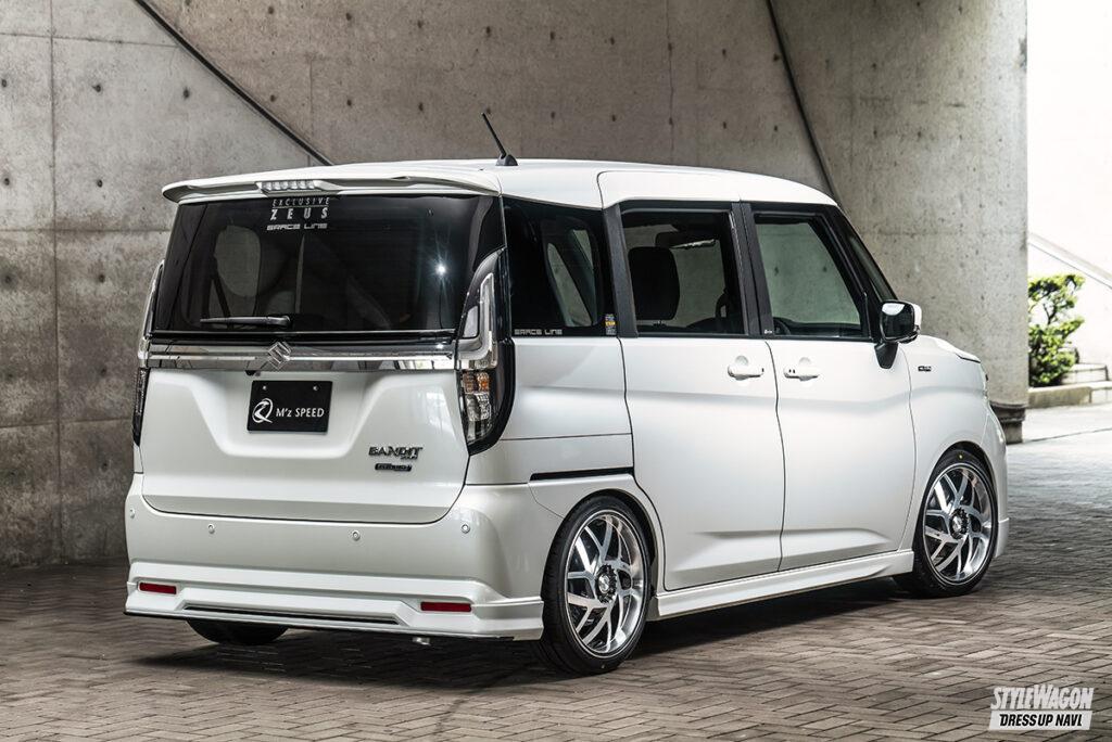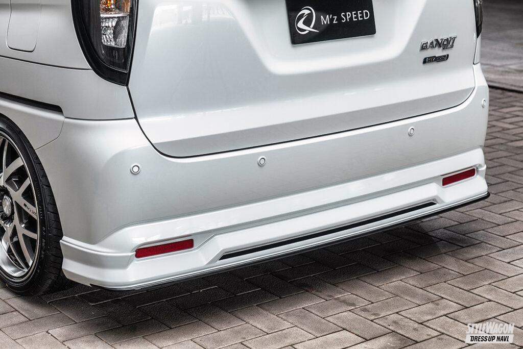 そんなソリオバンディットに向けて、エアロをリリースしたのがおなじみエクスクルーシブゼウス。グレースラインシリーズとなる今作は、フロントハーフスポイラー、リアアンダースポイラー、グリルガーニッシュ、リアゲートスポイラー、ピラーパネルという構成。ソリオバンディットは標準でエアロタイプの前後バンパーが装備されているが、その形状を活かしながら、よりスタイリッシュな印象に仕上げているのが特徴だ。ハーフタイプの前後スポイラーは、立体的かつ直線基調のシンプルなラインでスッキリとした造形を採用。家族でのお出かけにもすんなりと溶け込む、スタイリッシュなフォルムに仕上がっている。またフロントをマークレスにできるグリルガーニッシュやサイドのピラーパネルなど、手軽にカスタムできるアイテムが用意されているのもポイントだ。