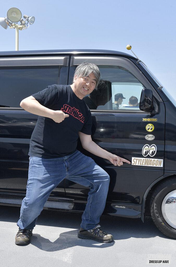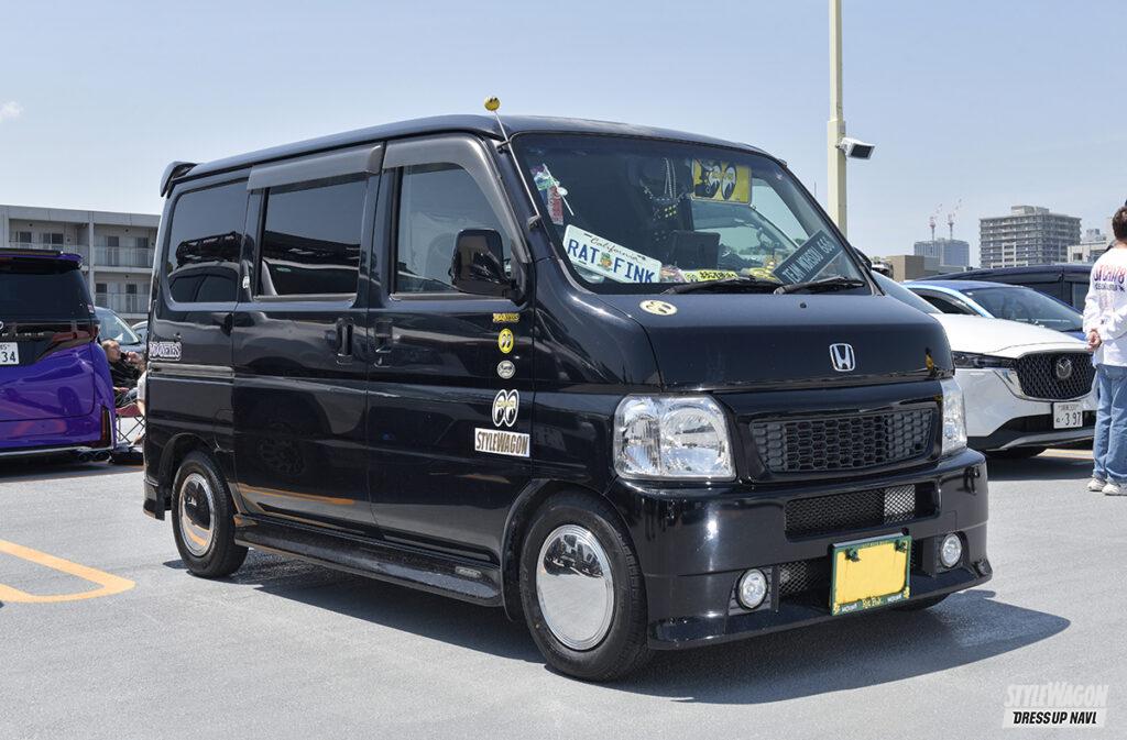 通勤車でもあるバモスは、ムーンアイズのアイテムを数多く取り入れたアメリカンスタイル。ラゲッジは100円ショップの小物を使ってラックを自作。大好きなアニメの「推しキャラ」をアピールする。