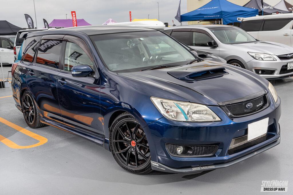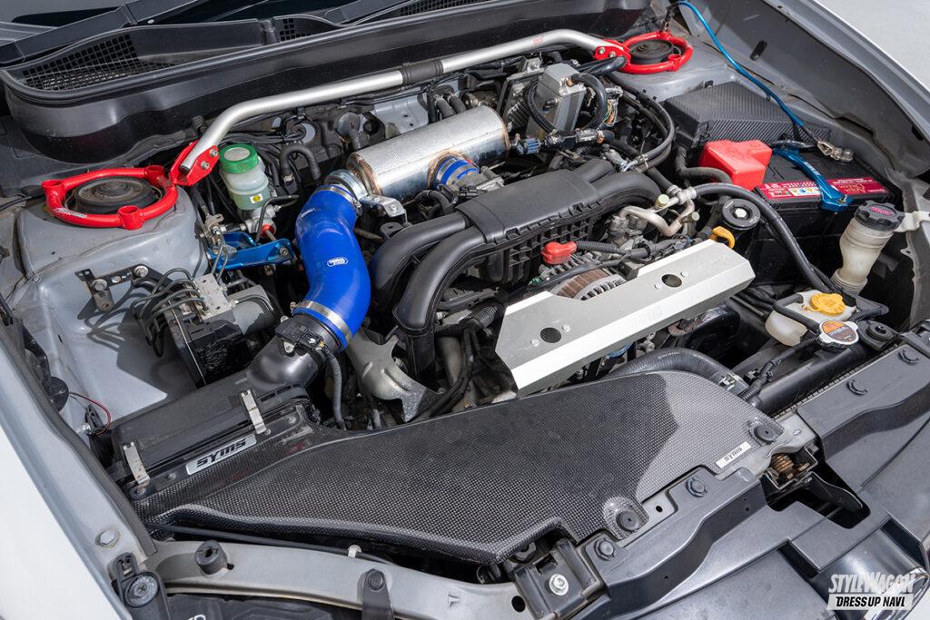 ホイールは定番のカラーだとつまらないという理由で、ブラック×ブルーのツートンで躍動感を主張するレイズ·グラムライツ57ゲイナーをセットアップ。すでに生産を終了しているため、他と被らないのも自慢だ。