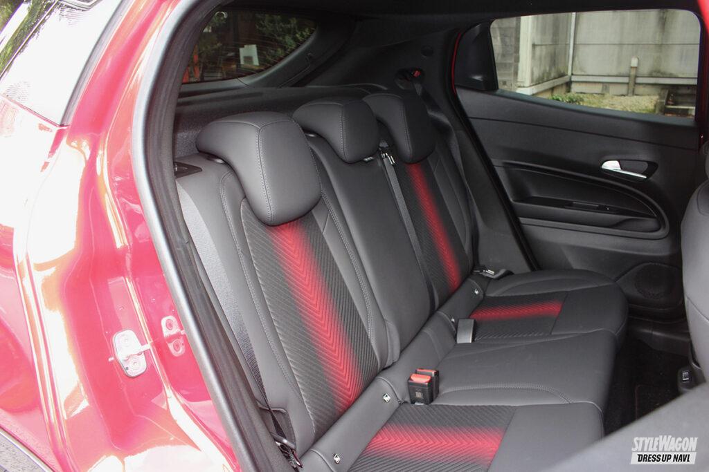走りの良さを予感させるドライバーオリエンテッドなコクピットに収まると、都市型SUVらしい少し高めの視界が広がる。少し気になるのが、左足が押されるように感じること。フットレストは備わるものの、前方に伸びるセンタートンネルが運転席側に向かって若干斜めになっていて、左足まわりが狭く感じられるのだ。助手席側の右足側は広く、右ハンドル化のネガを若干抱かせる。