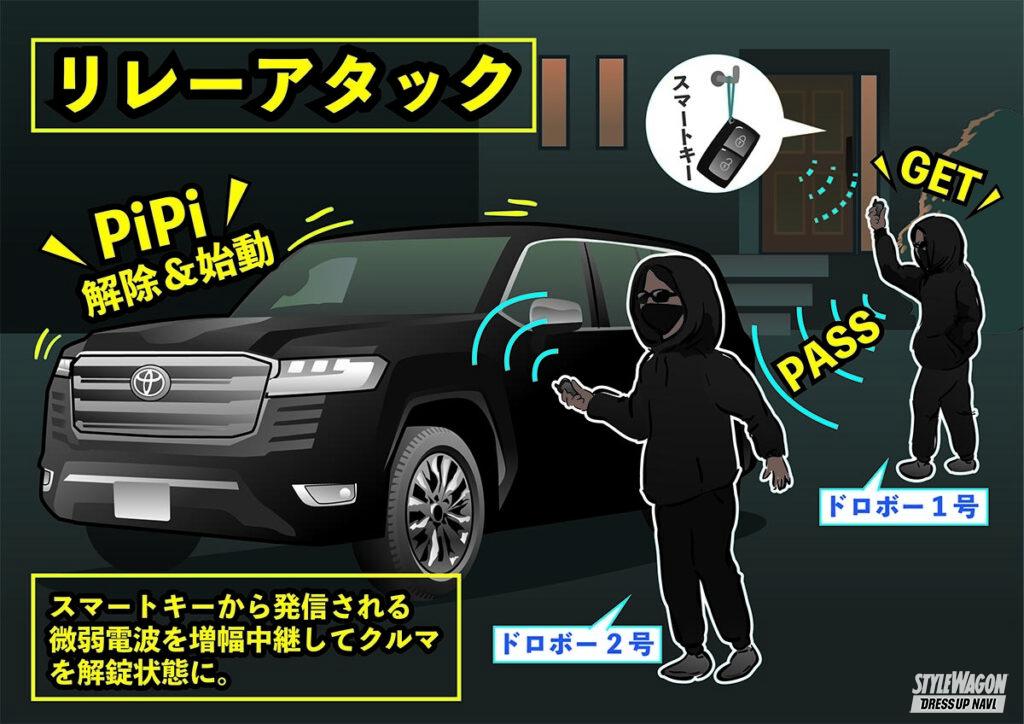 スマートキーの微弱電波を拾ってリレー形式で鍵のIDコードを盗難【リレーアタック】