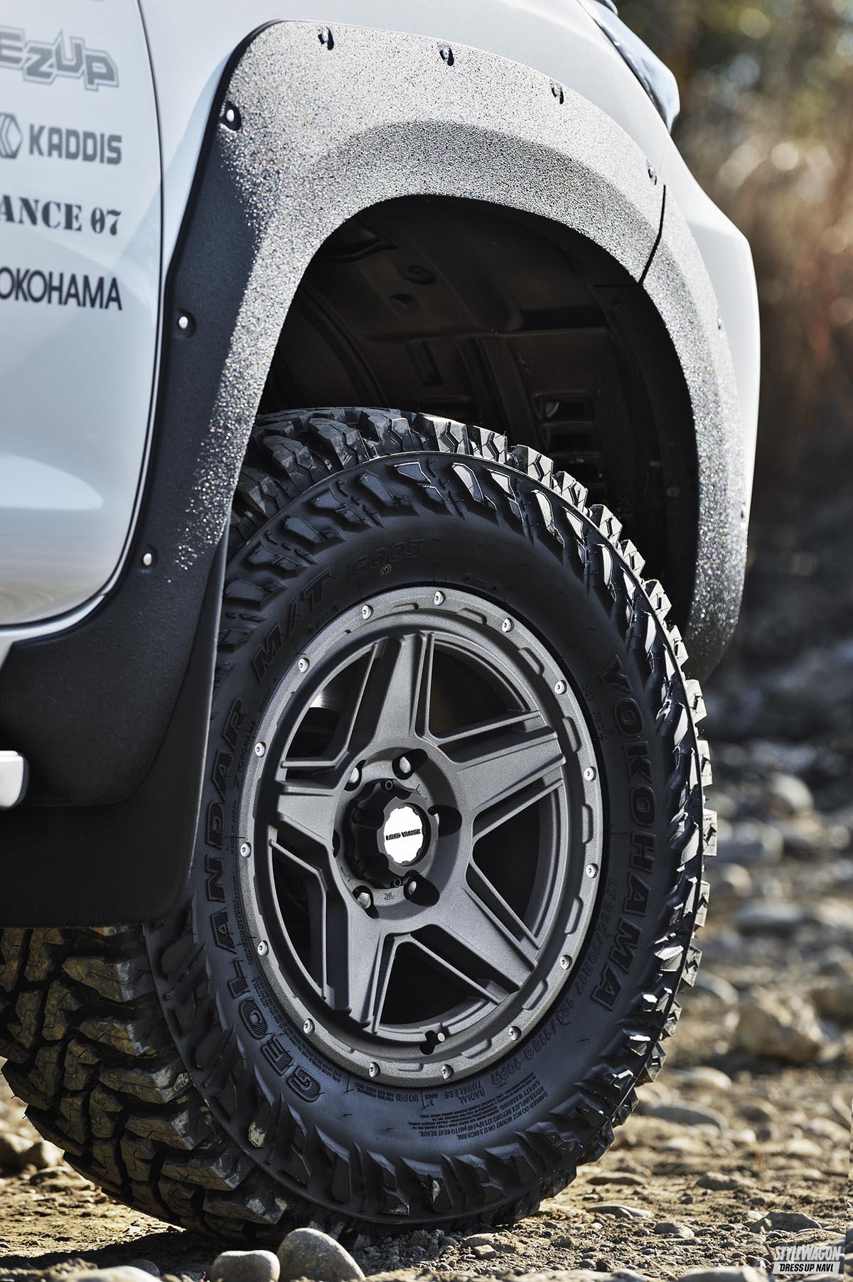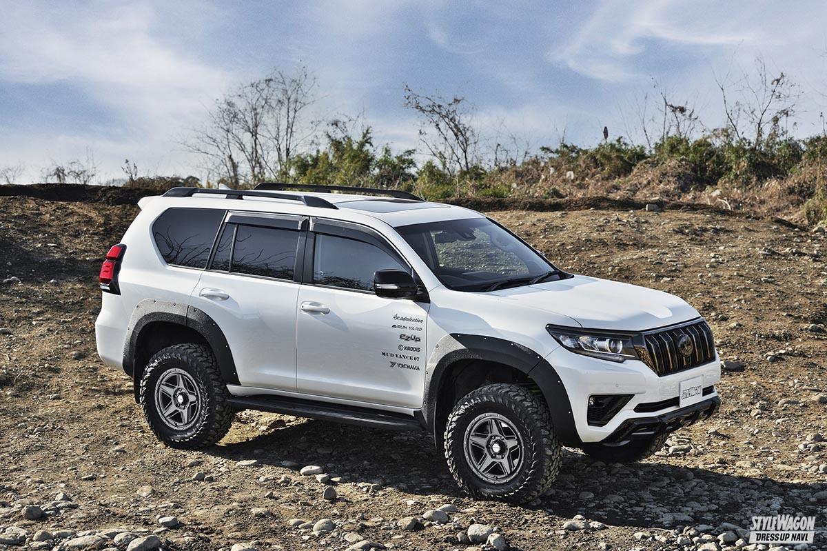 例えばランドクルーザー・プラドのように、いかにもヨンクらしいパワー系の車種に合わせるには、その車格に負けないだけの迫力やインパクトが、ホイールにも求められる。パワフルで骨太、たくましさが全身からあふれ出しているようなホイールこそが、スタイルの完成度を高め、プラド本来の魅力も引き出すからだ。