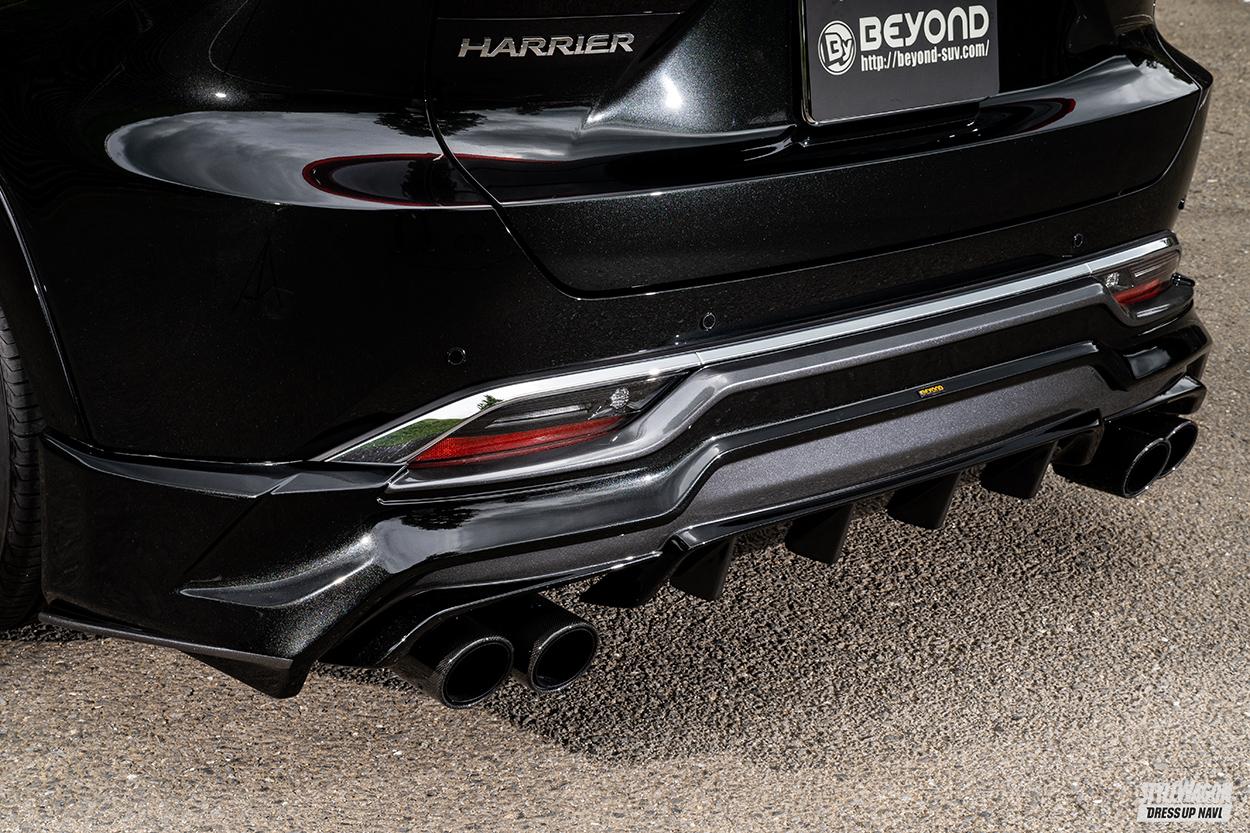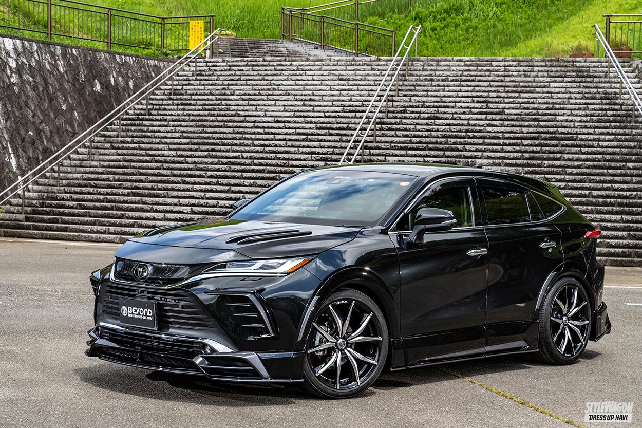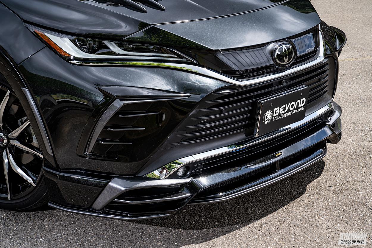 ビヨンドはSUV専用のエアロレーベル。ブランド樹立以来こだわり続けているのが、エアロを付けた満足感を味わえる立体的な造型美であり、グレード感を高める手応え抜群なチューンド系スポーツスタイルだ。ダブルリップ風フロントハーフ、抑揚感の高いサイドパネル、ディフューザー系のリアと貫禄十分なベースエアロのほか、ボンネットやその専用フィン、さらに装着することでローダウン効果も得られる1度に2度お得なオバフェンと、完成度を高めるアクセサリーも複数用意されている。フロントサイドガーニッシュひとつだけでも、顔面の雰囲気はかなりカワる!