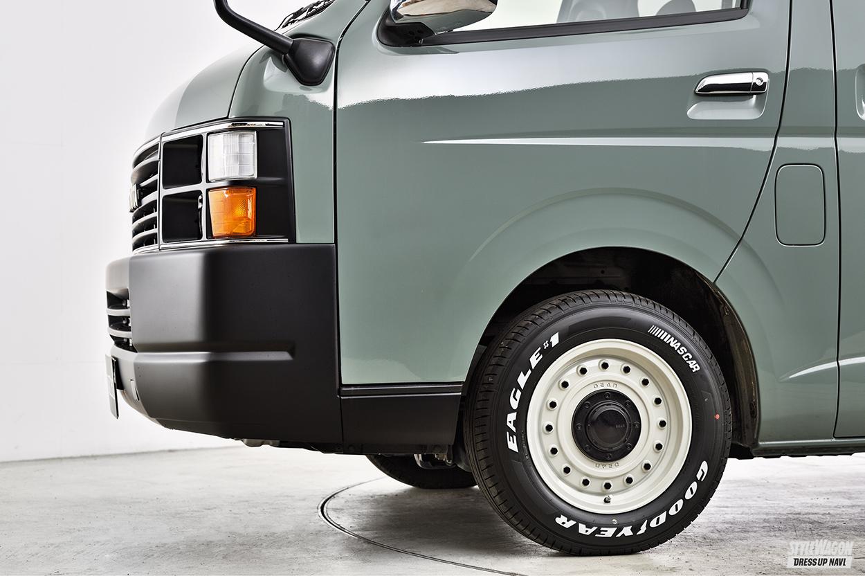 オフスタイルでは基本的に口径を上げるのではなく、口径を小さくして厚めのタイヤを合わせるのが王道。車高が純正でもタイヤの迫力が増せば、十分な力感とワイルド感が得られるのだ。17インチでもOKで、その際はホイールが17×7J+38、タイヤが215/60あたり。